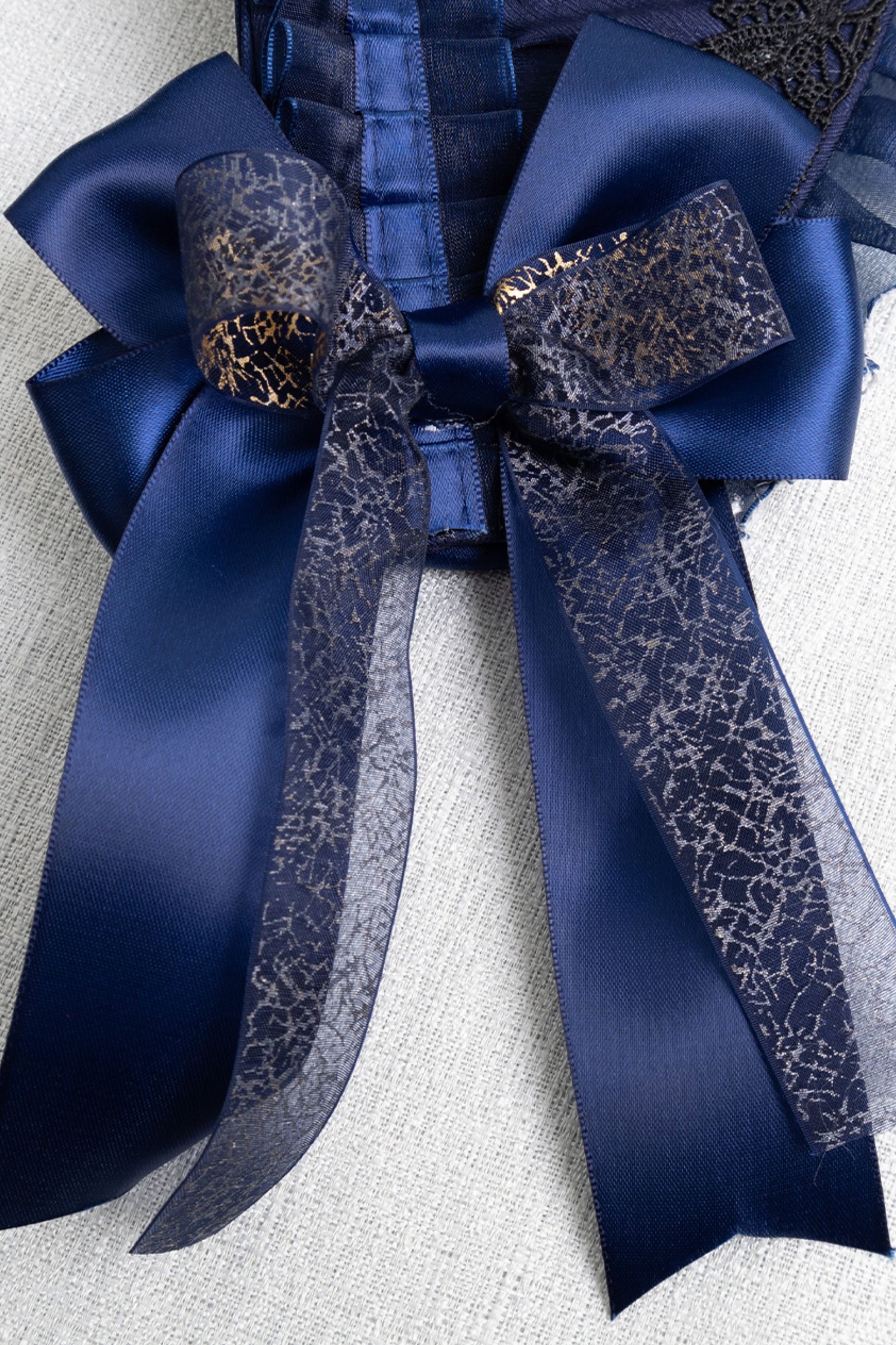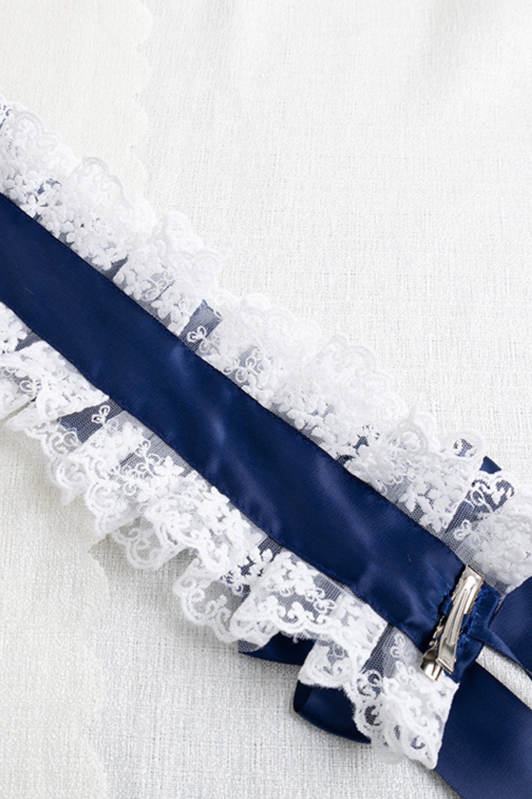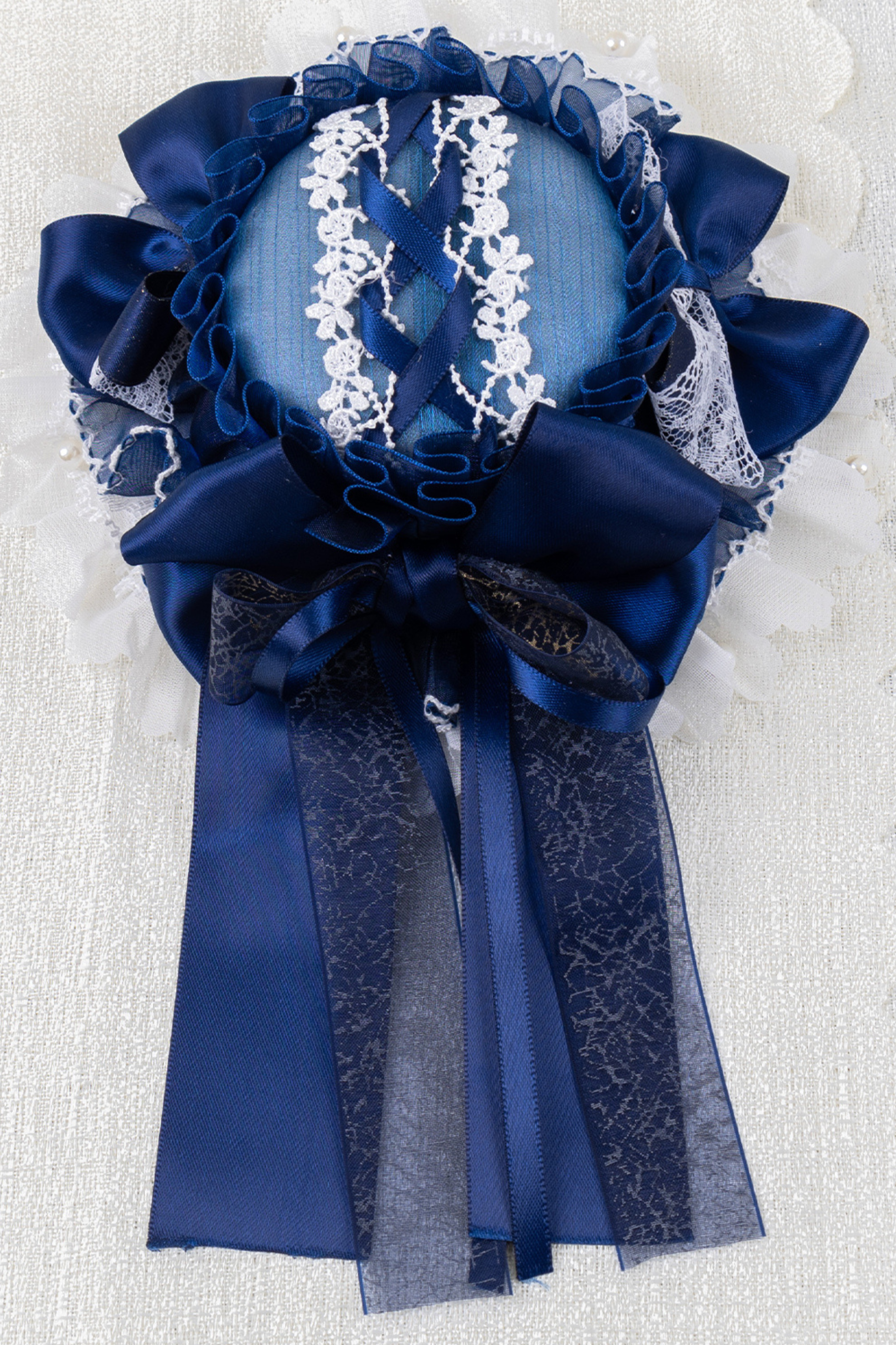 ネイビーブルーロリータボンネット+ヘアバンド+ハットクリップ+リボンクリップ