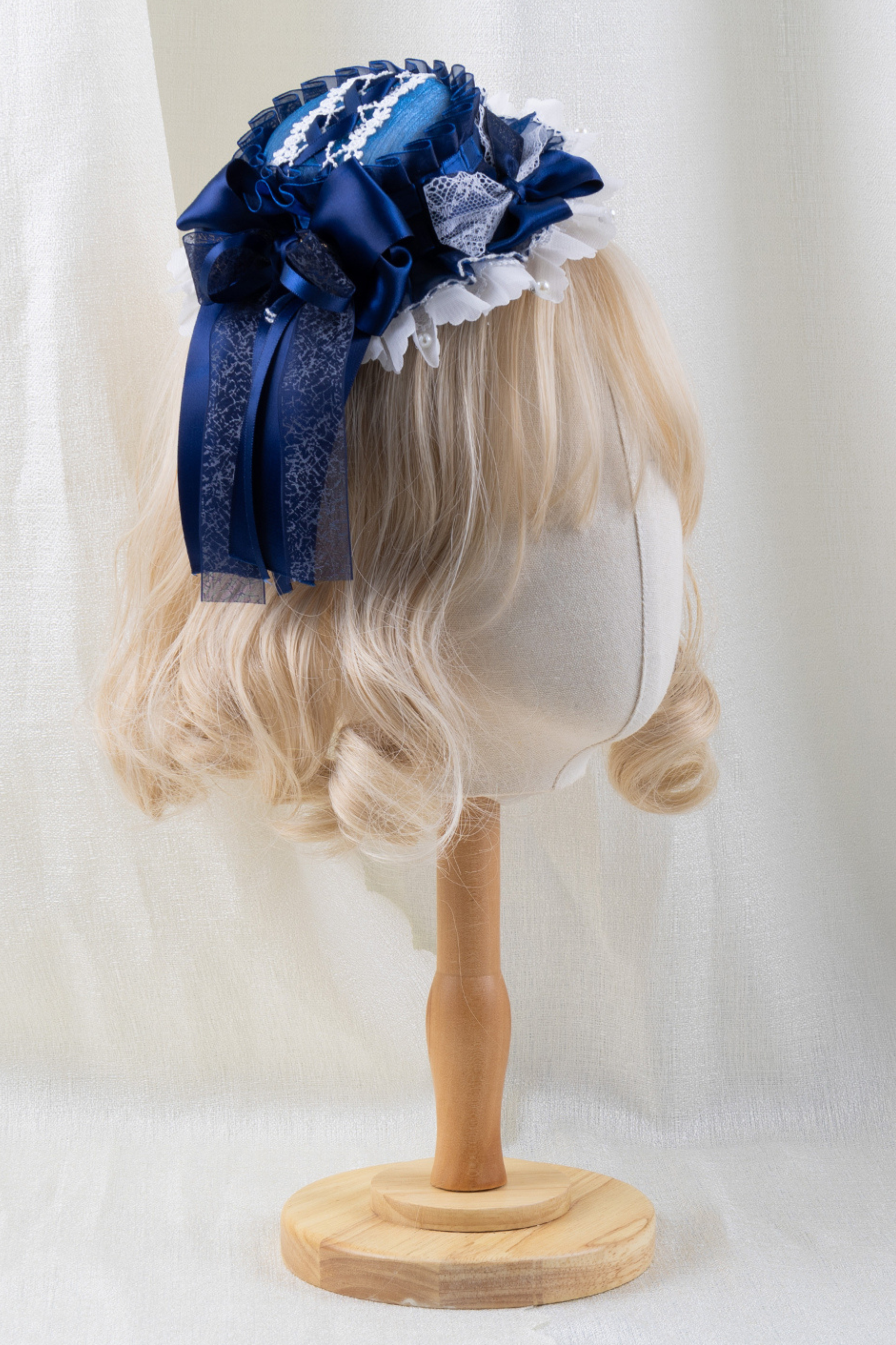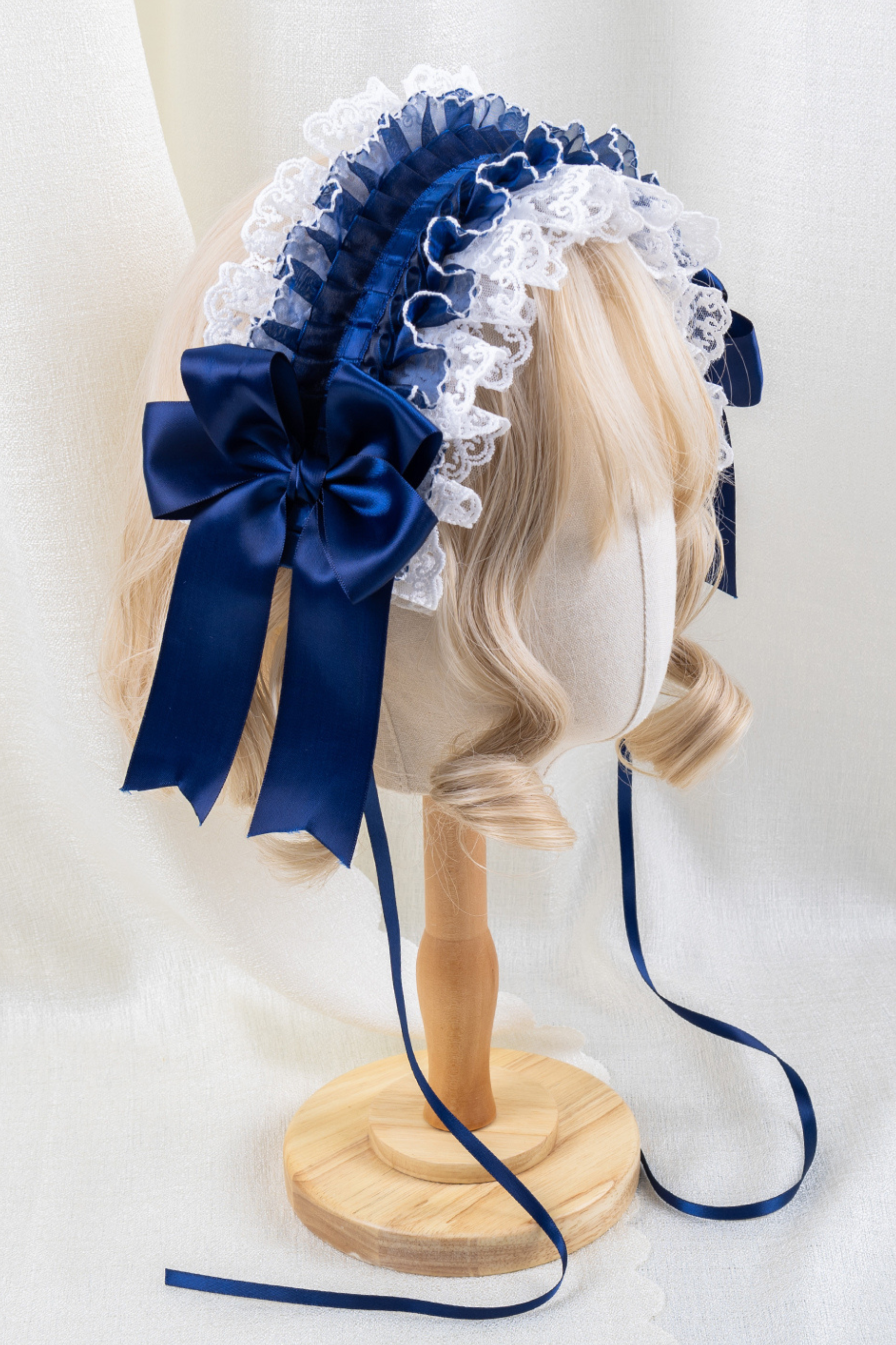 ❤ネイビーブルーロリータボンネット+ヘアバンド+ハットクリップ+リボンクリップ❤