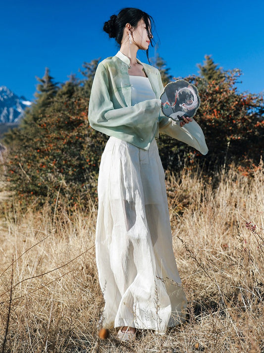 Mehrlagiges Hagoromo-Kleid mit japanischem Rüschenmuster und angenähtem Kragen