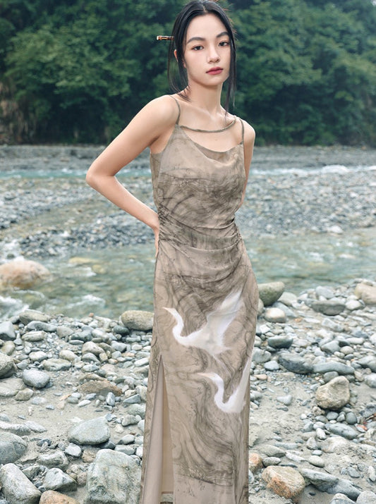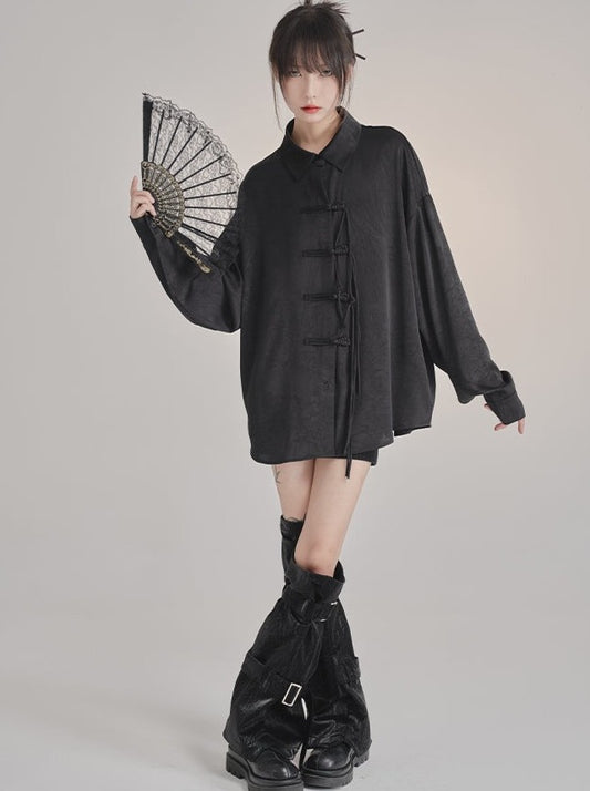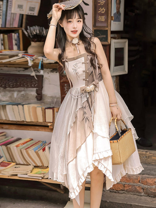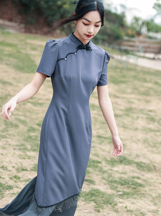 Asymmetrisches Kleid mit Blumenquasten und chinesischem Geschmack