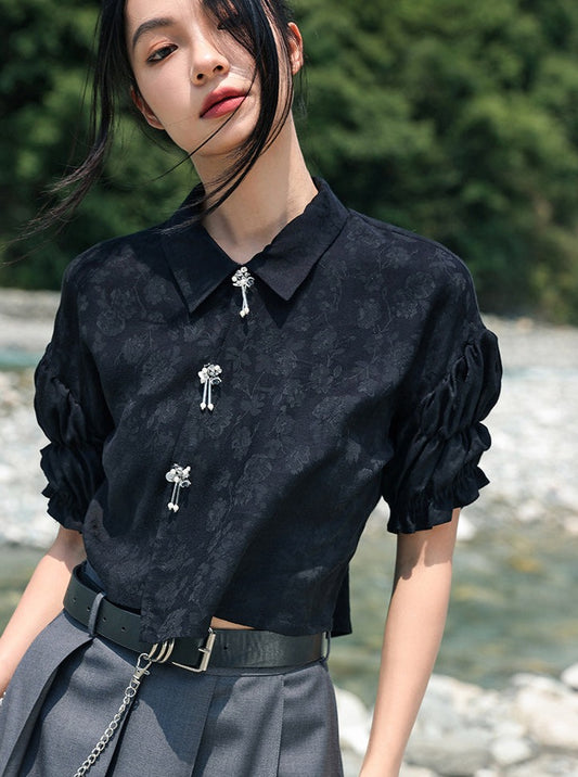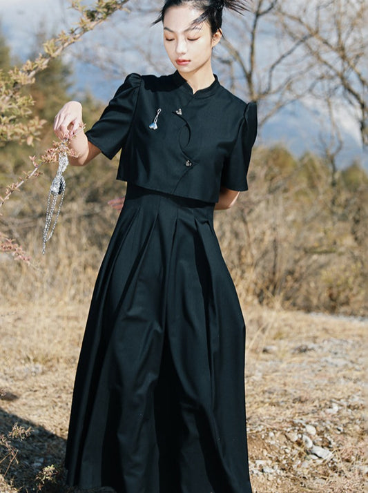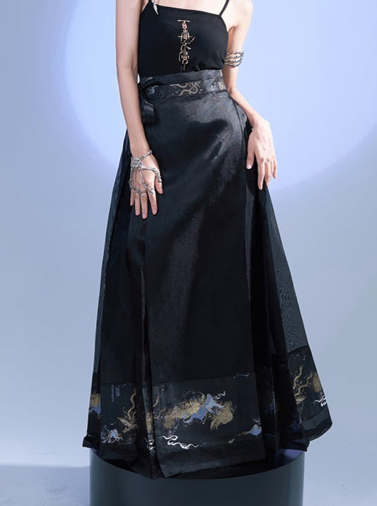 China Retro Schwarz und Gold Transparenter Faltenrock [Lange mittlere Länge].