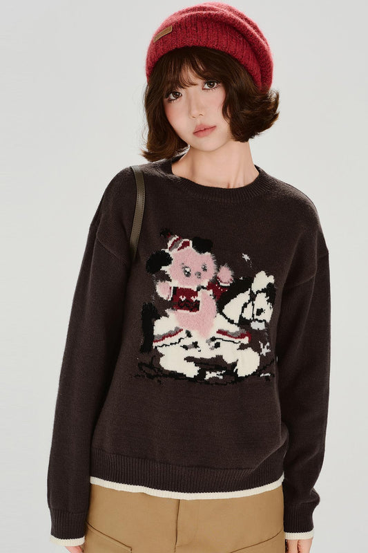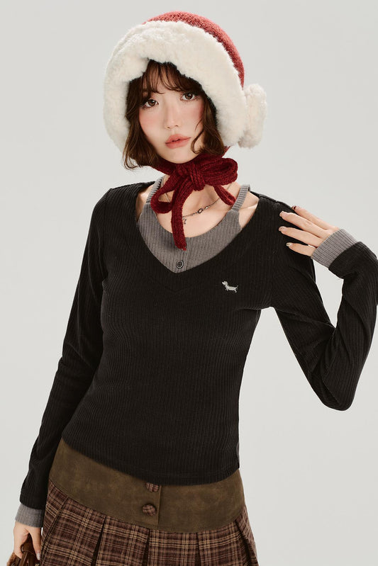 【1月6日予約締切】ホワイトレースオフショルダーリボンニットトップス+千鳥格子スカート
