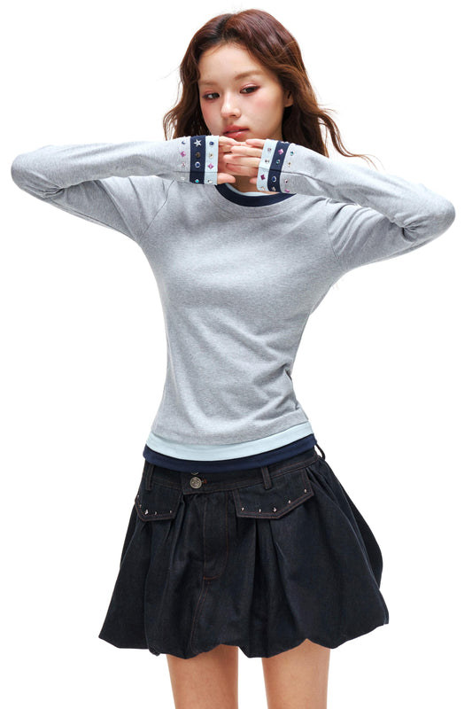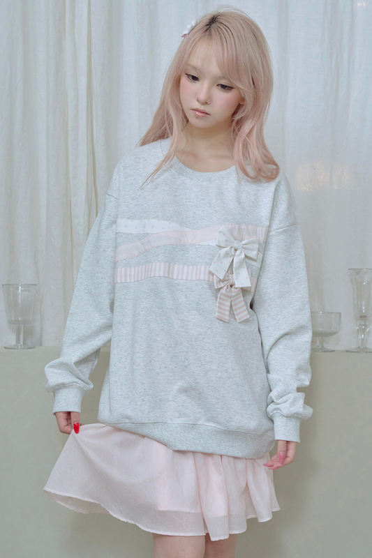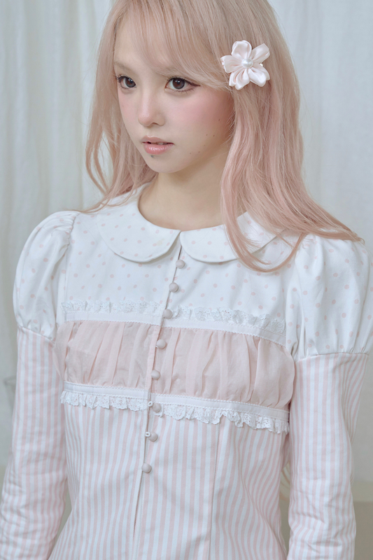 【1月7日予約締切】ジュエルリボンベルスリーブシャツ+ブラックストライプティアードスカート+セットアップ