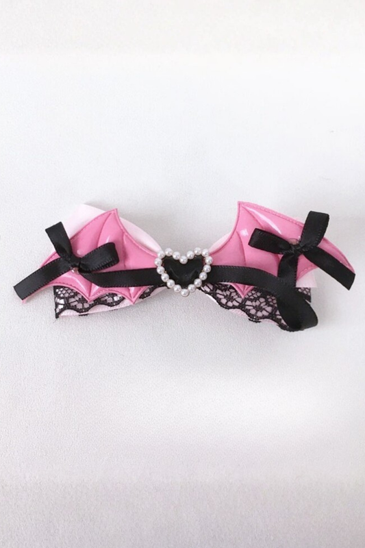 Schwarz-rosa Haarspange mit Spitzenband