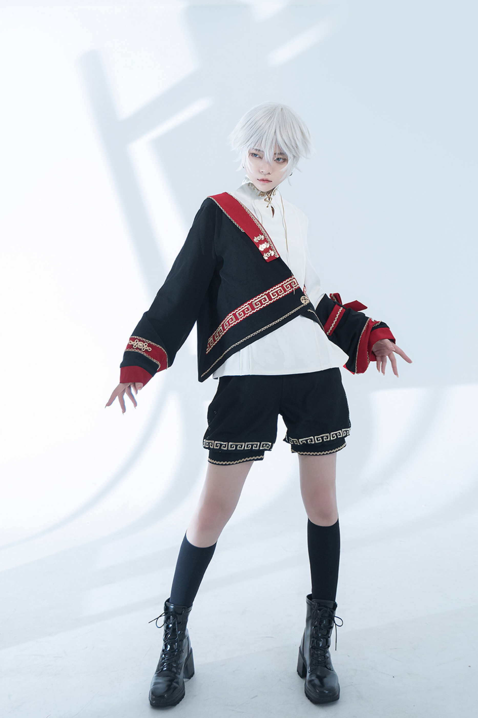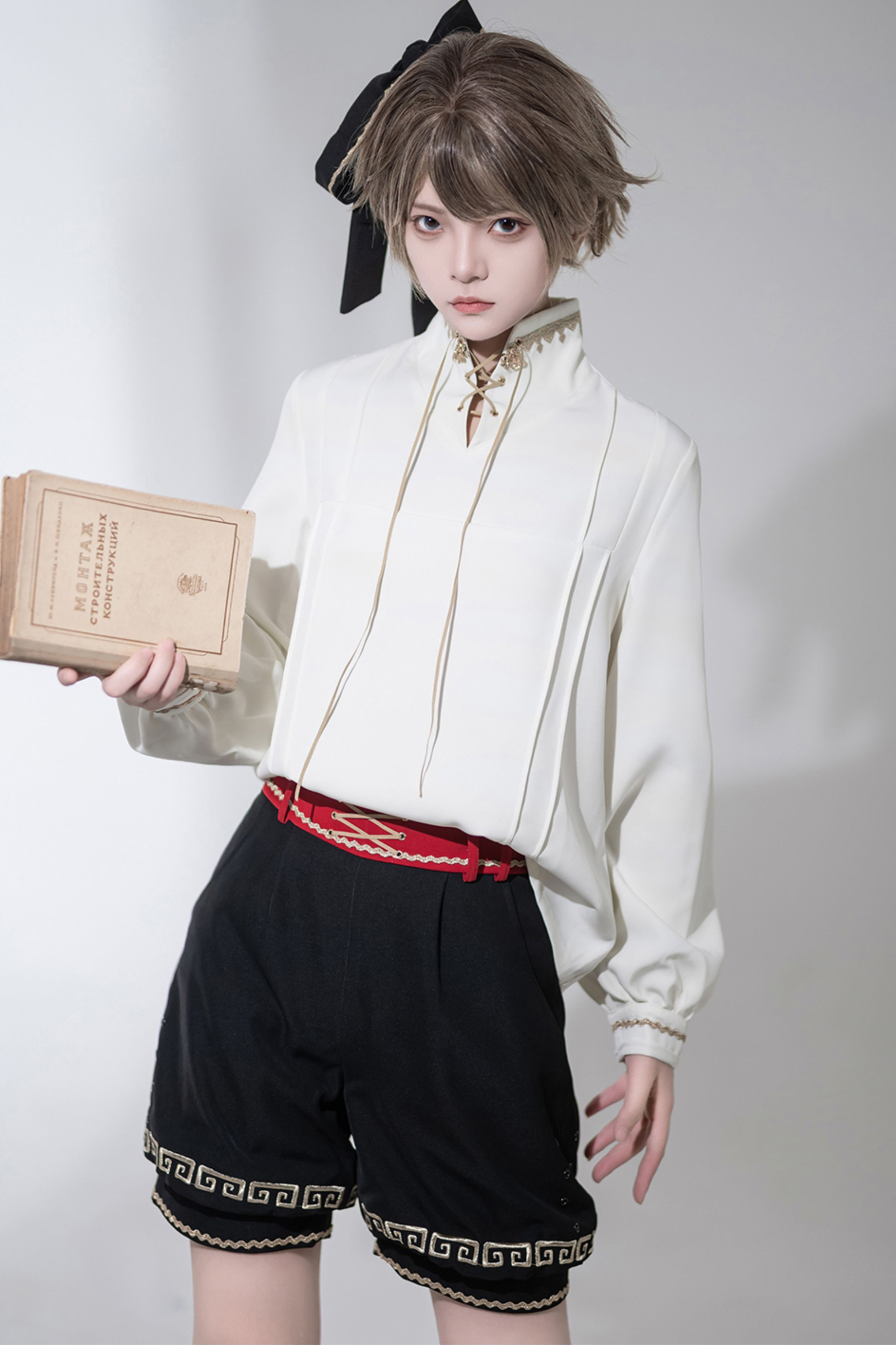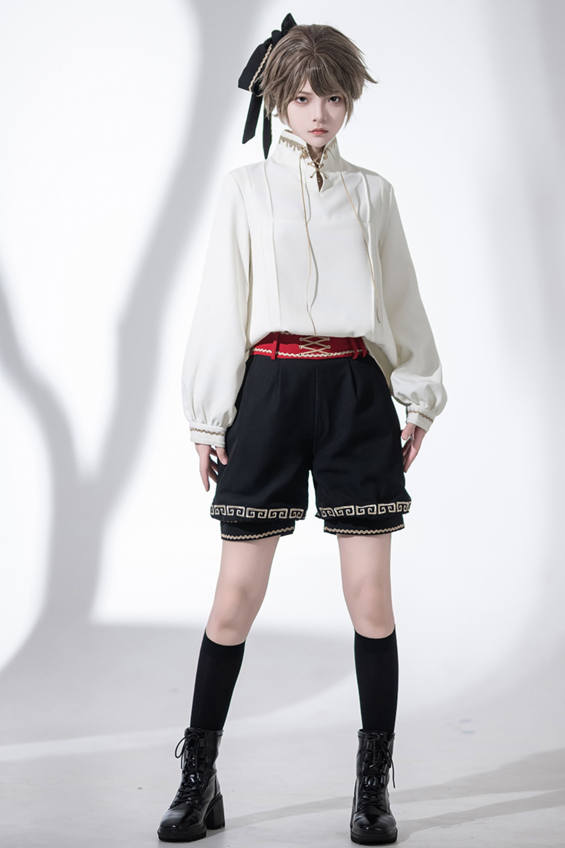 レトロスタンドカラーシャツ+ハーフパンツ+ジャケット