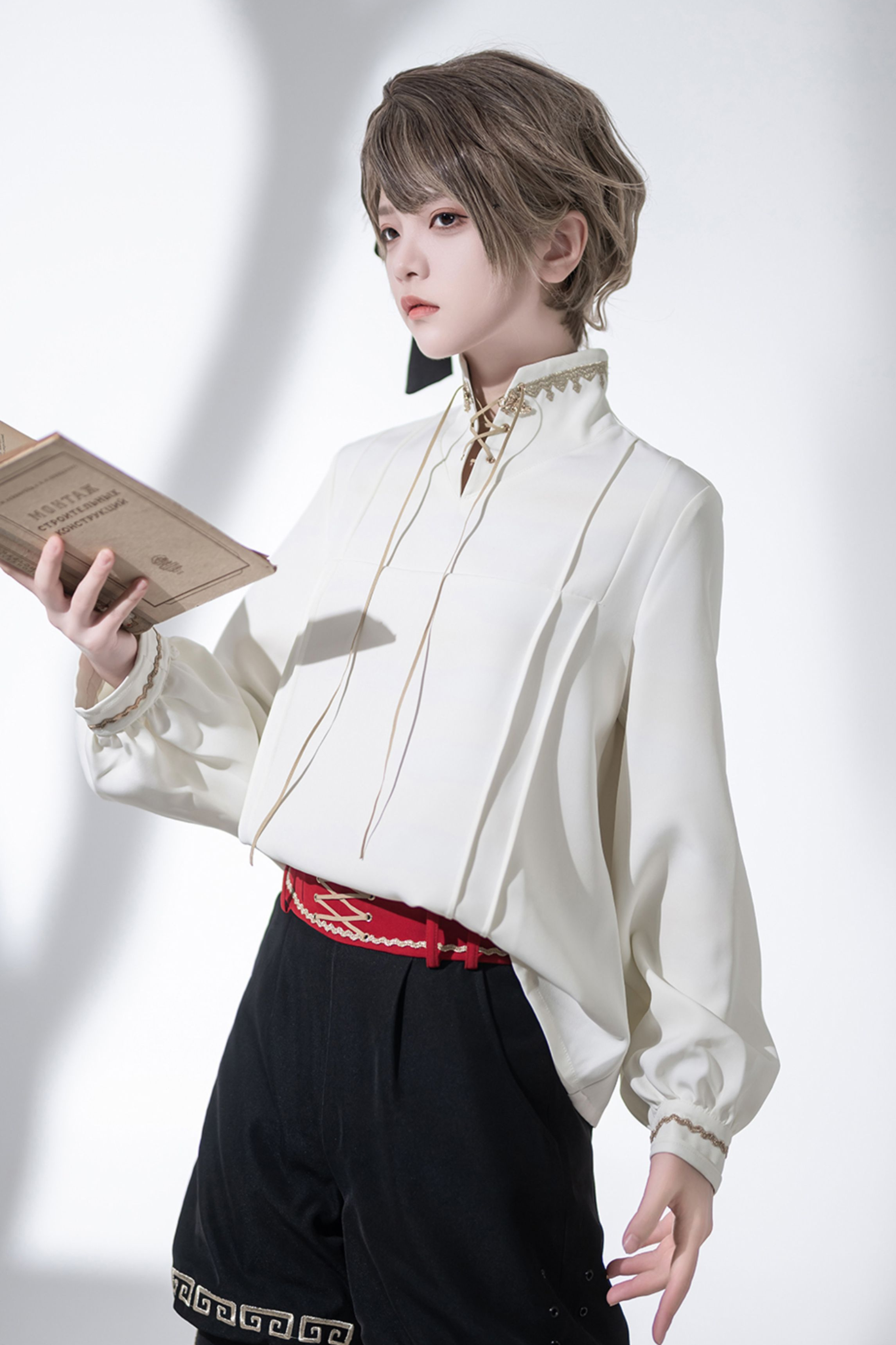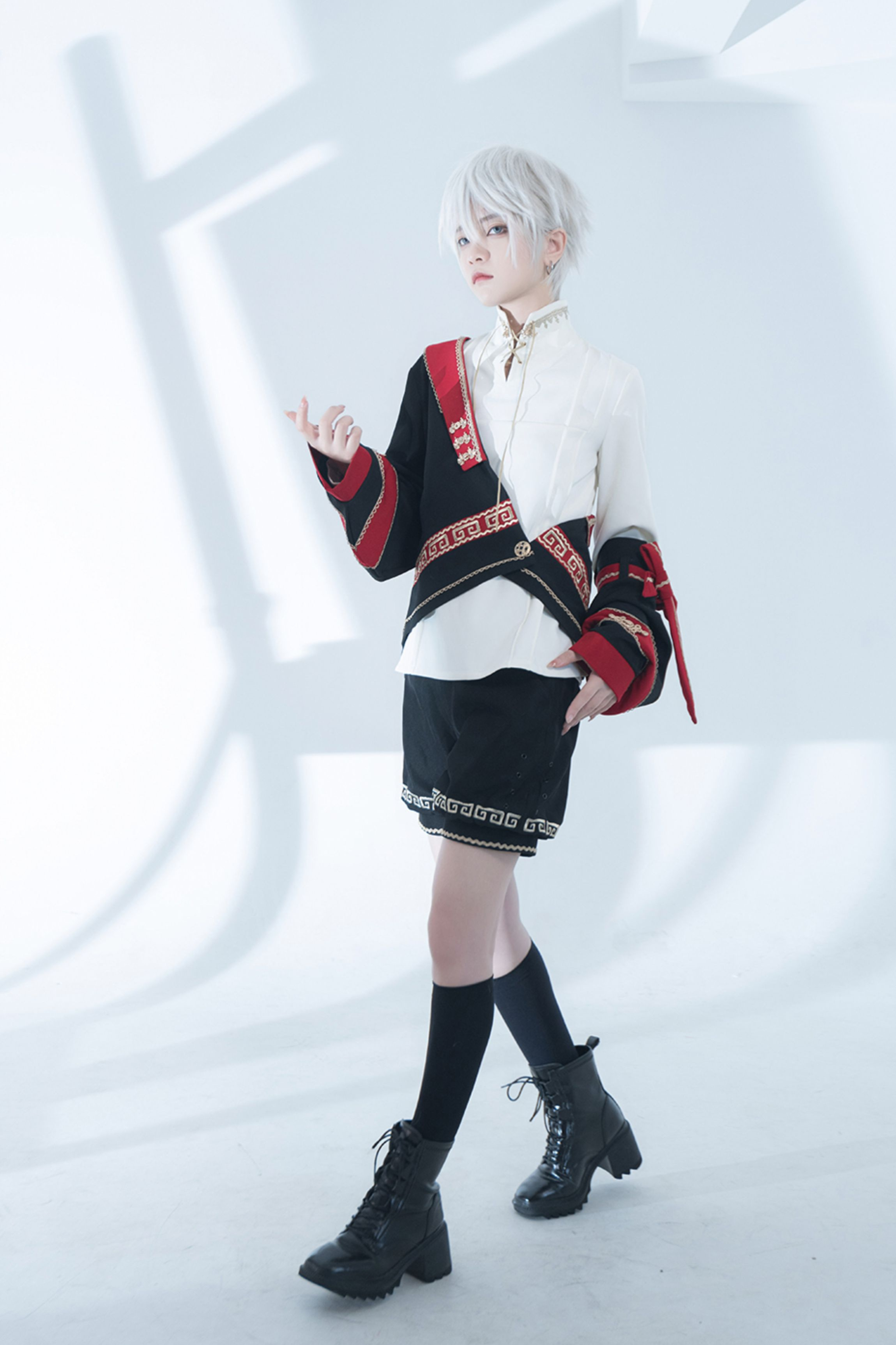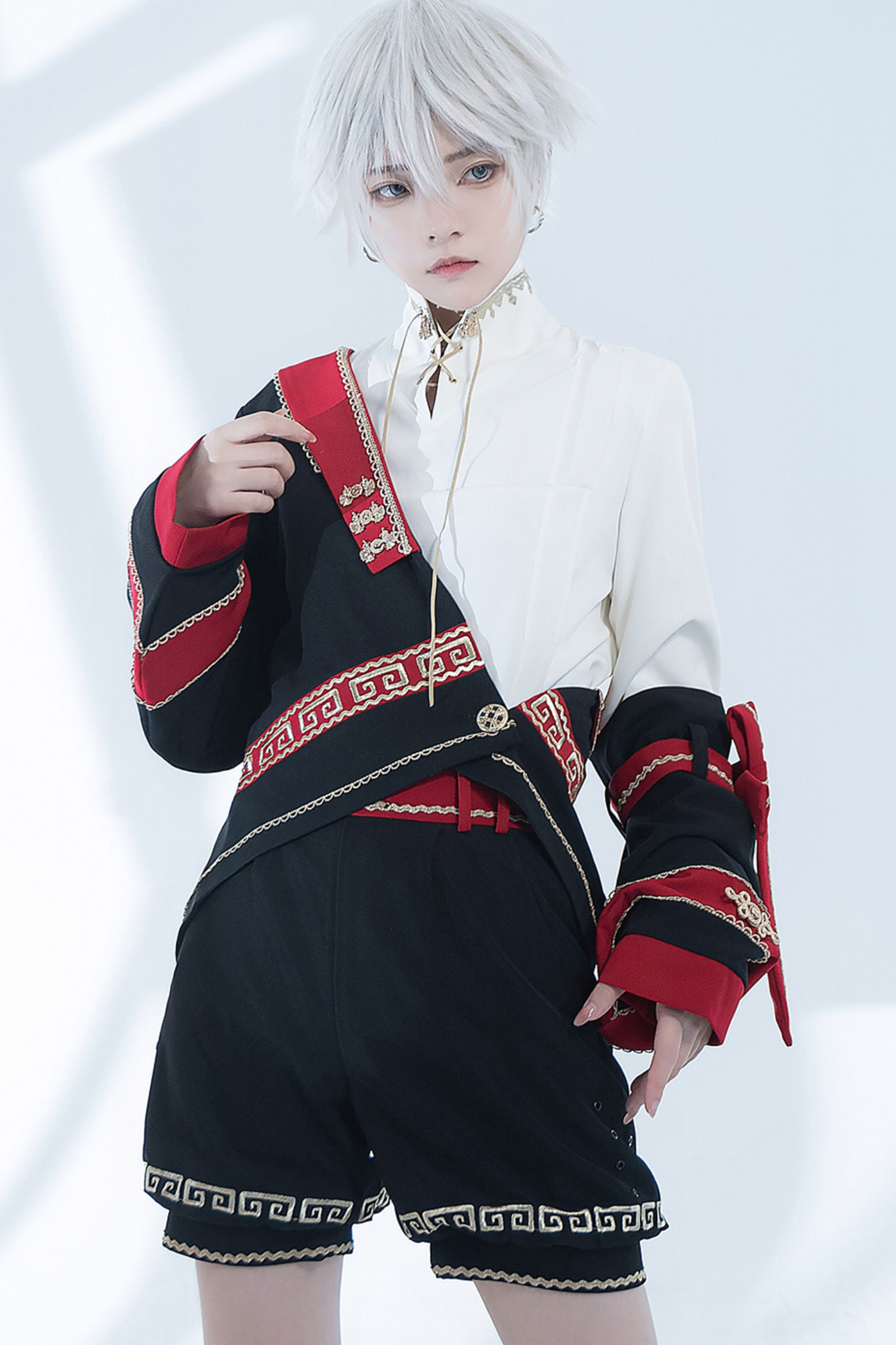 レトロスタンドカラーシャツ+ハーフパンツ+ジャケット