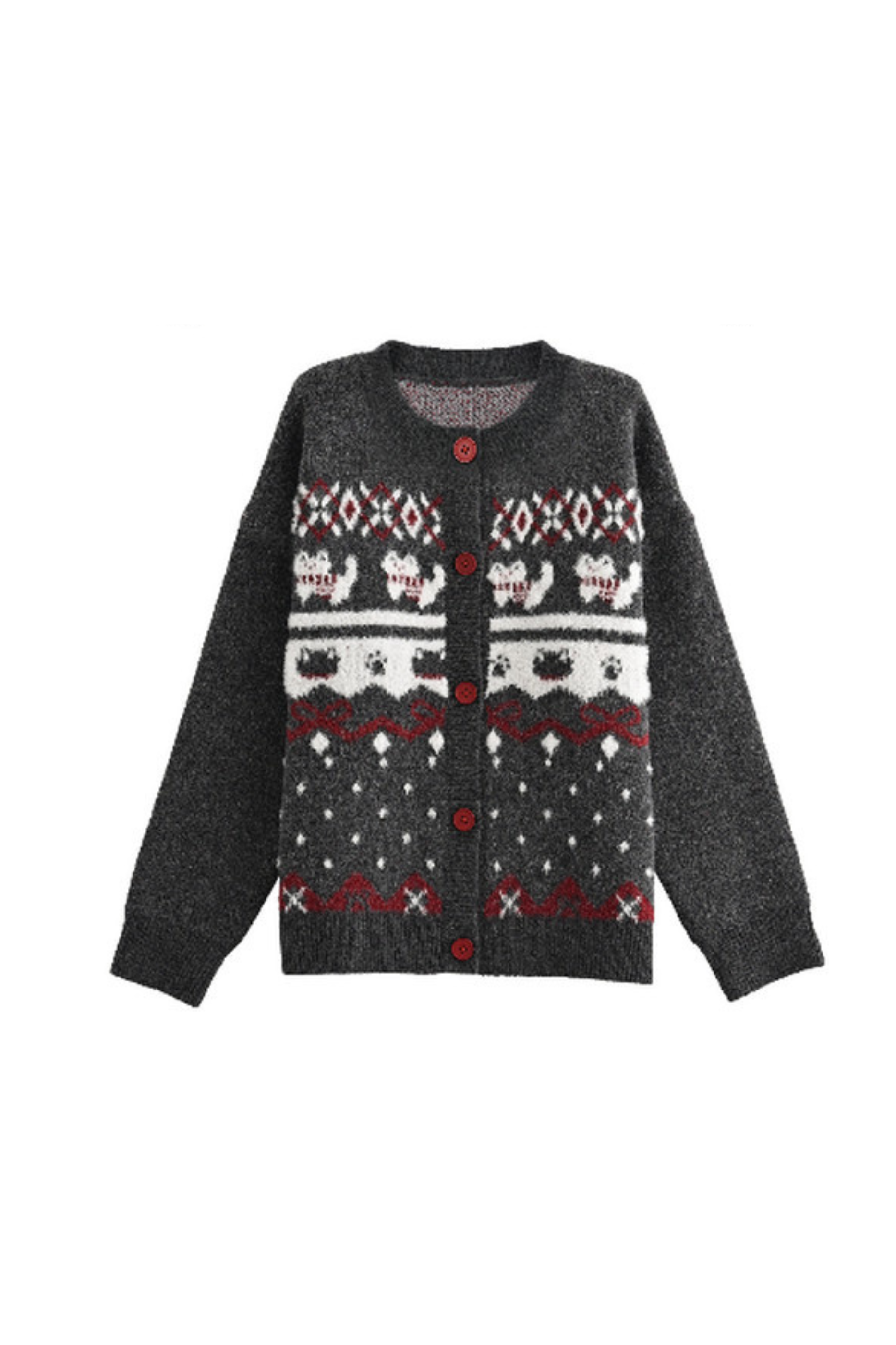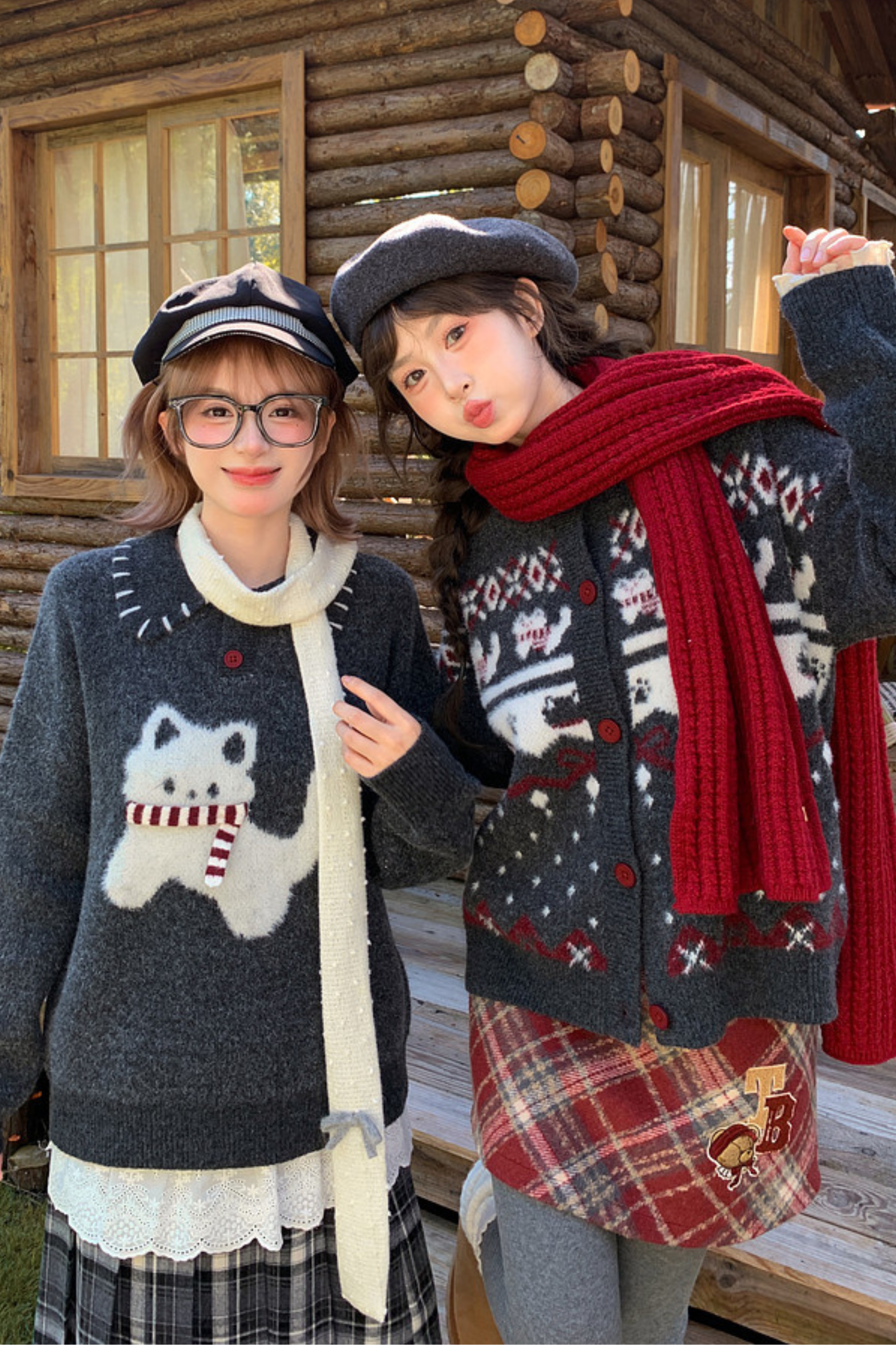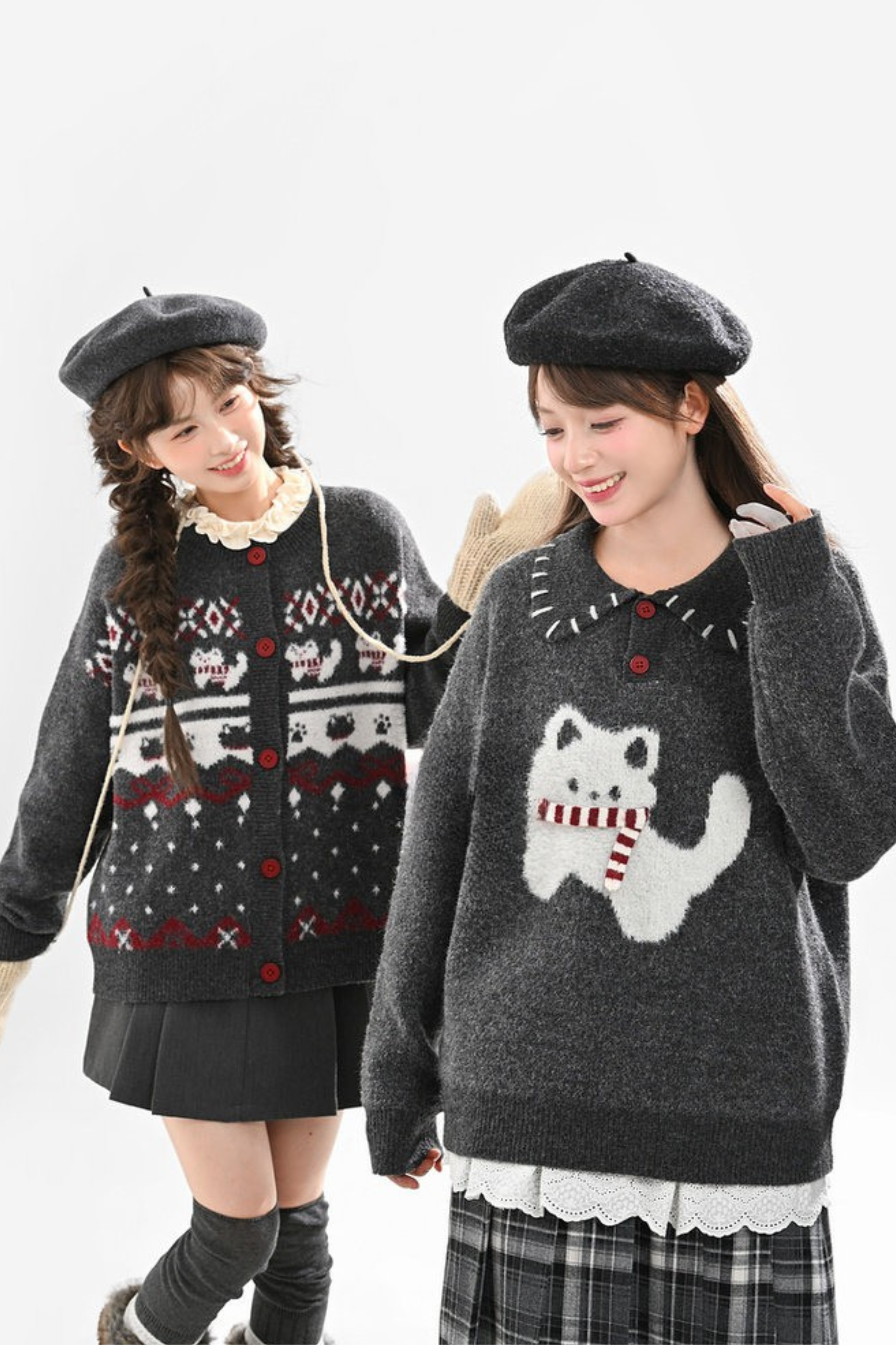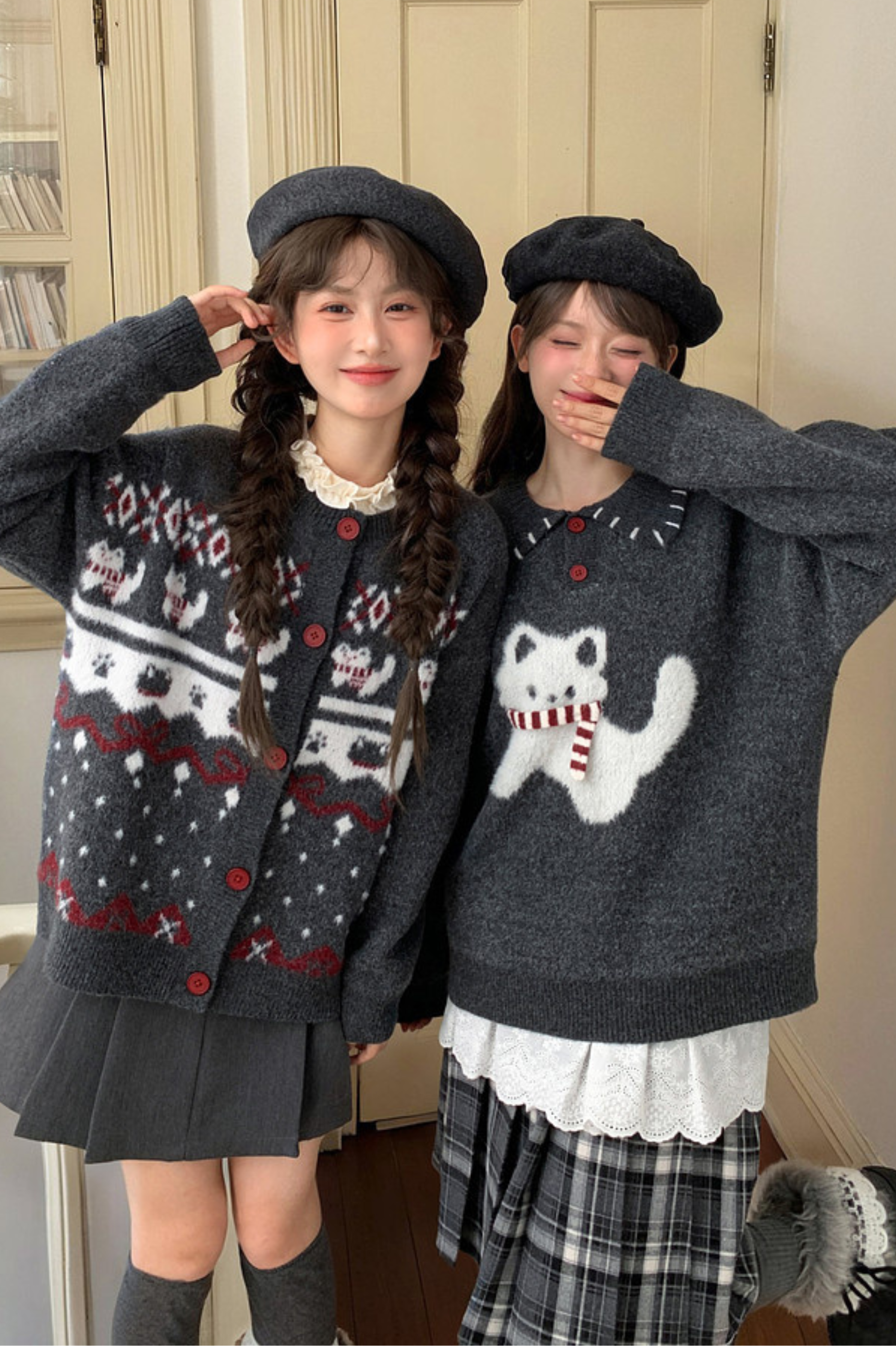 ❤キャットニットセーター+スノーフレークカーディガン❤