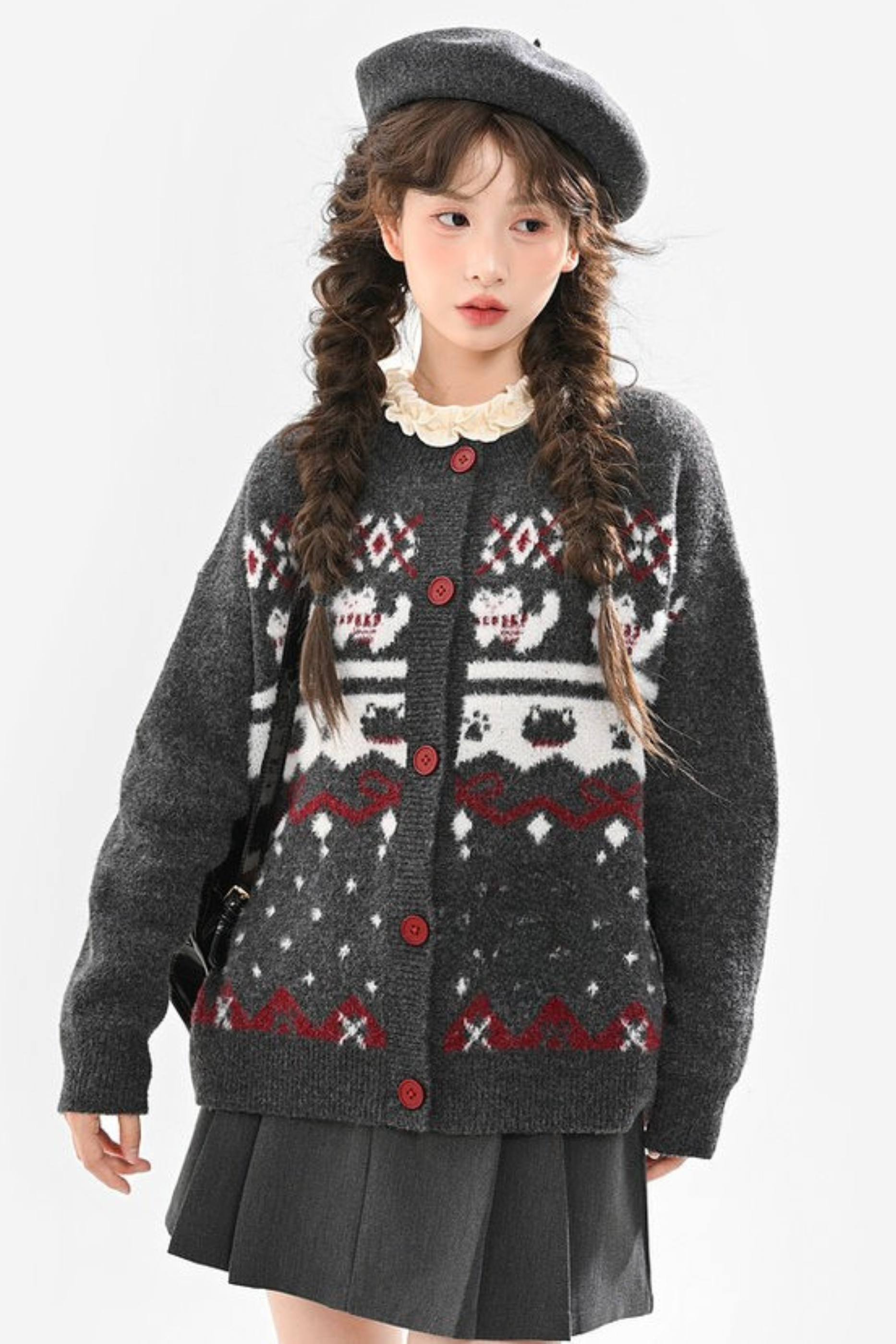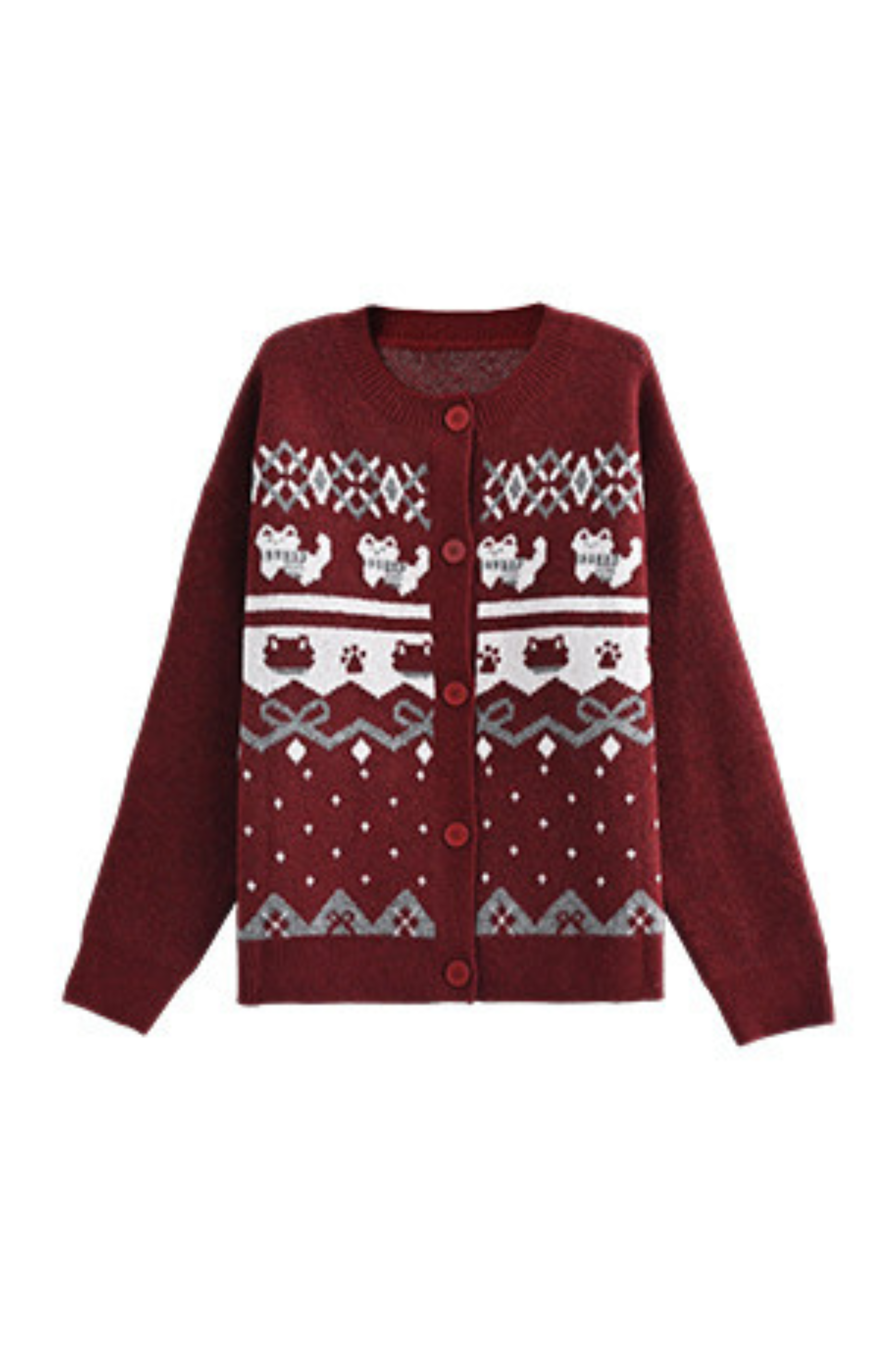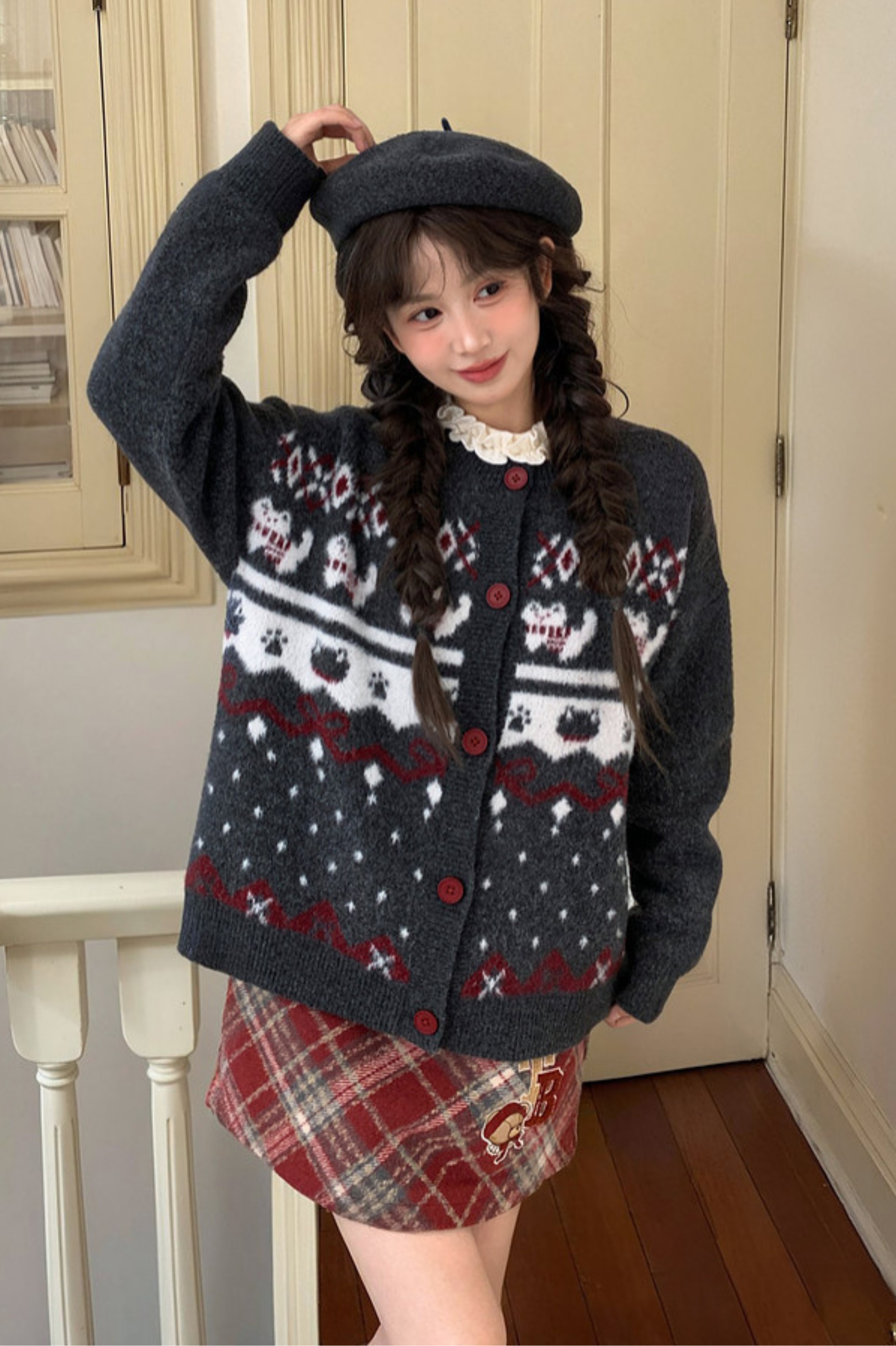 ❤キャットニットセーター+スノーフレークカーディガン❤