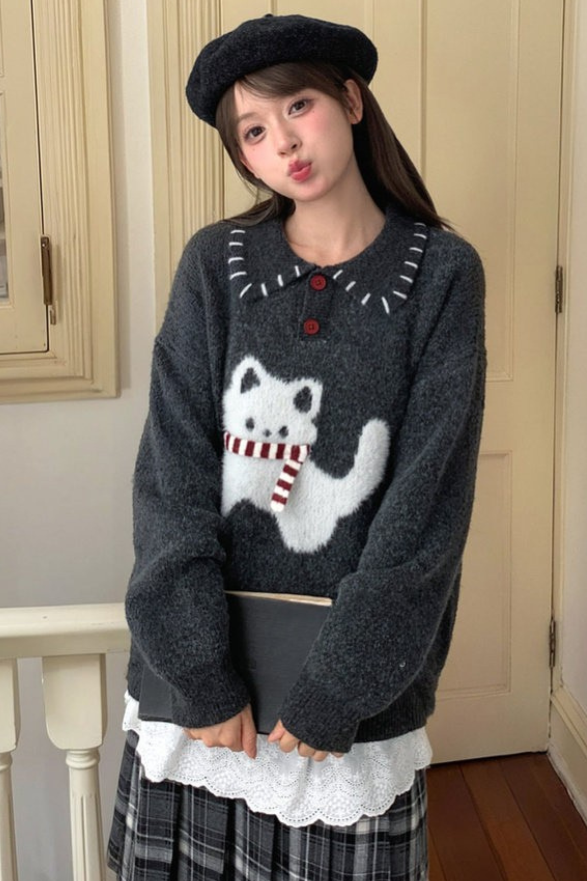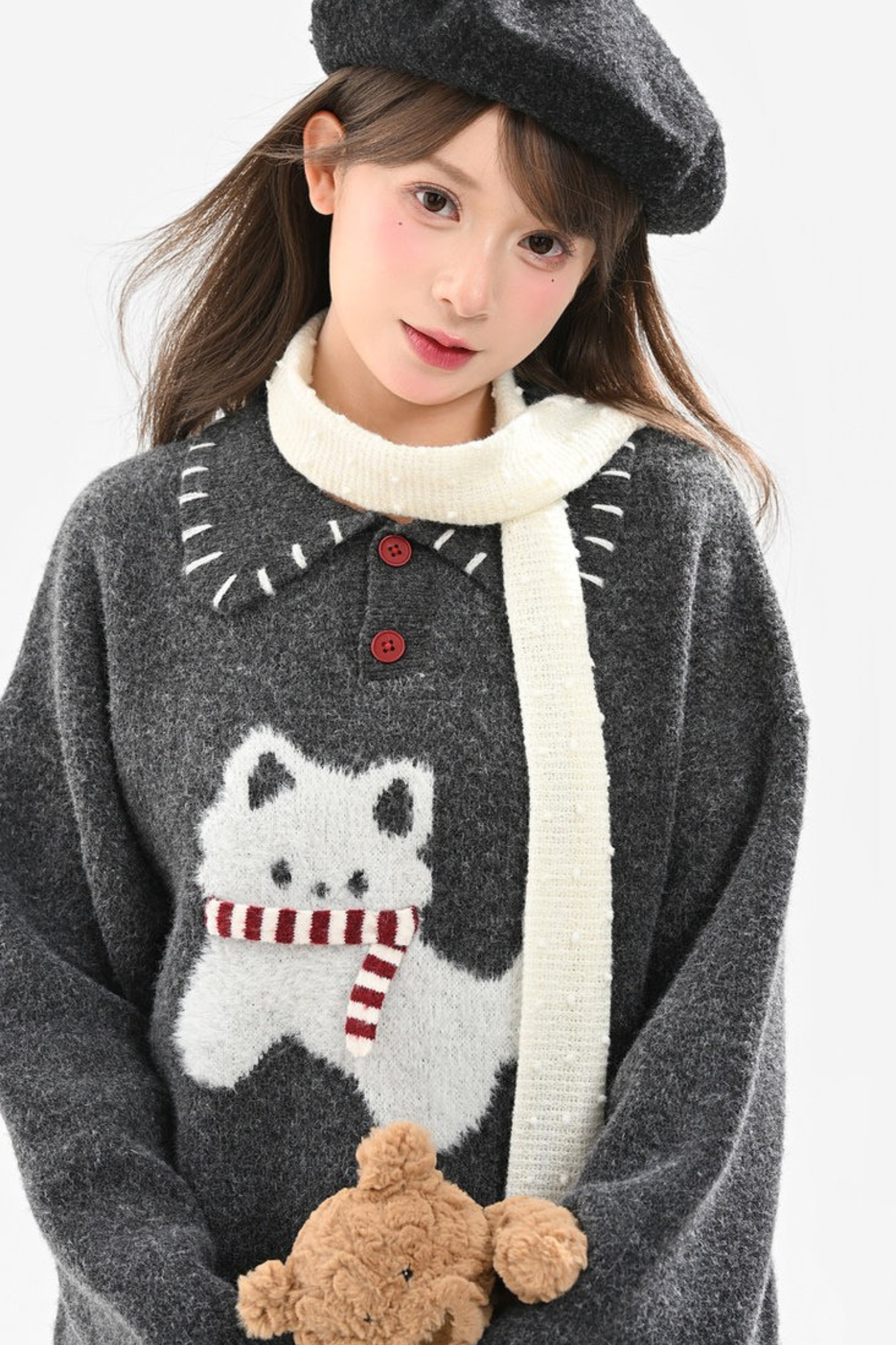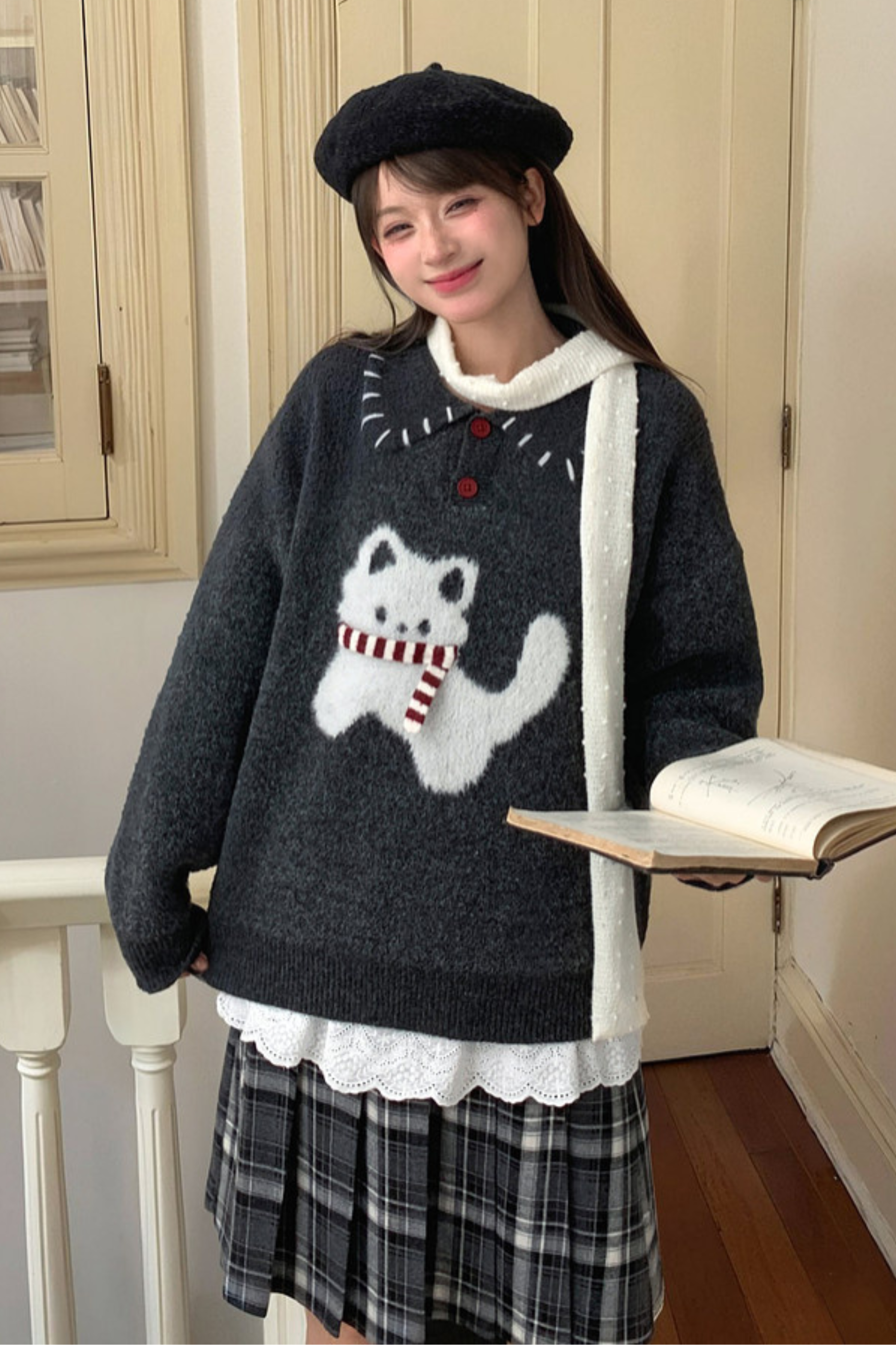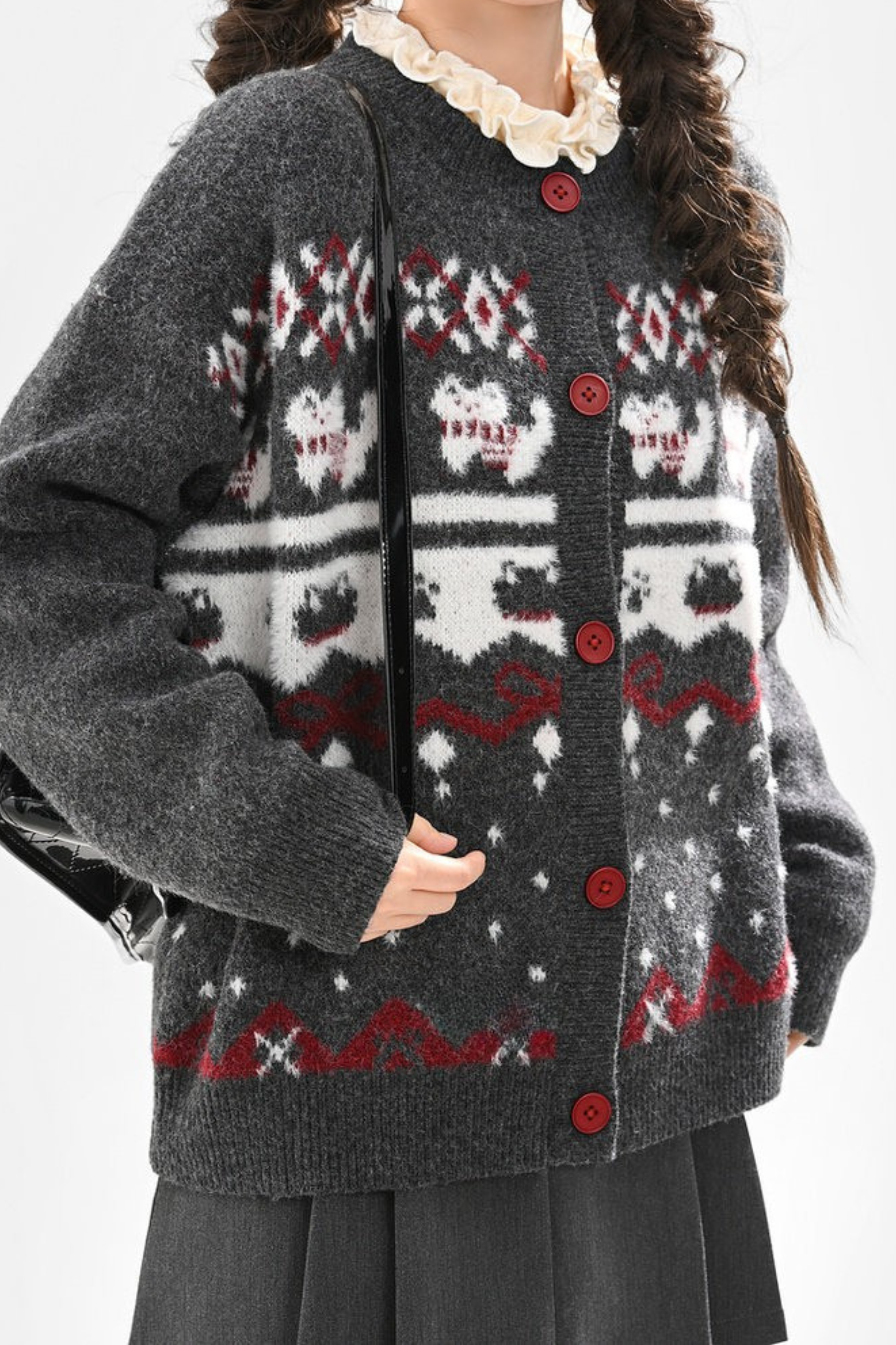 ❤キャットニットセーター+スノーフレークカーディガン❤