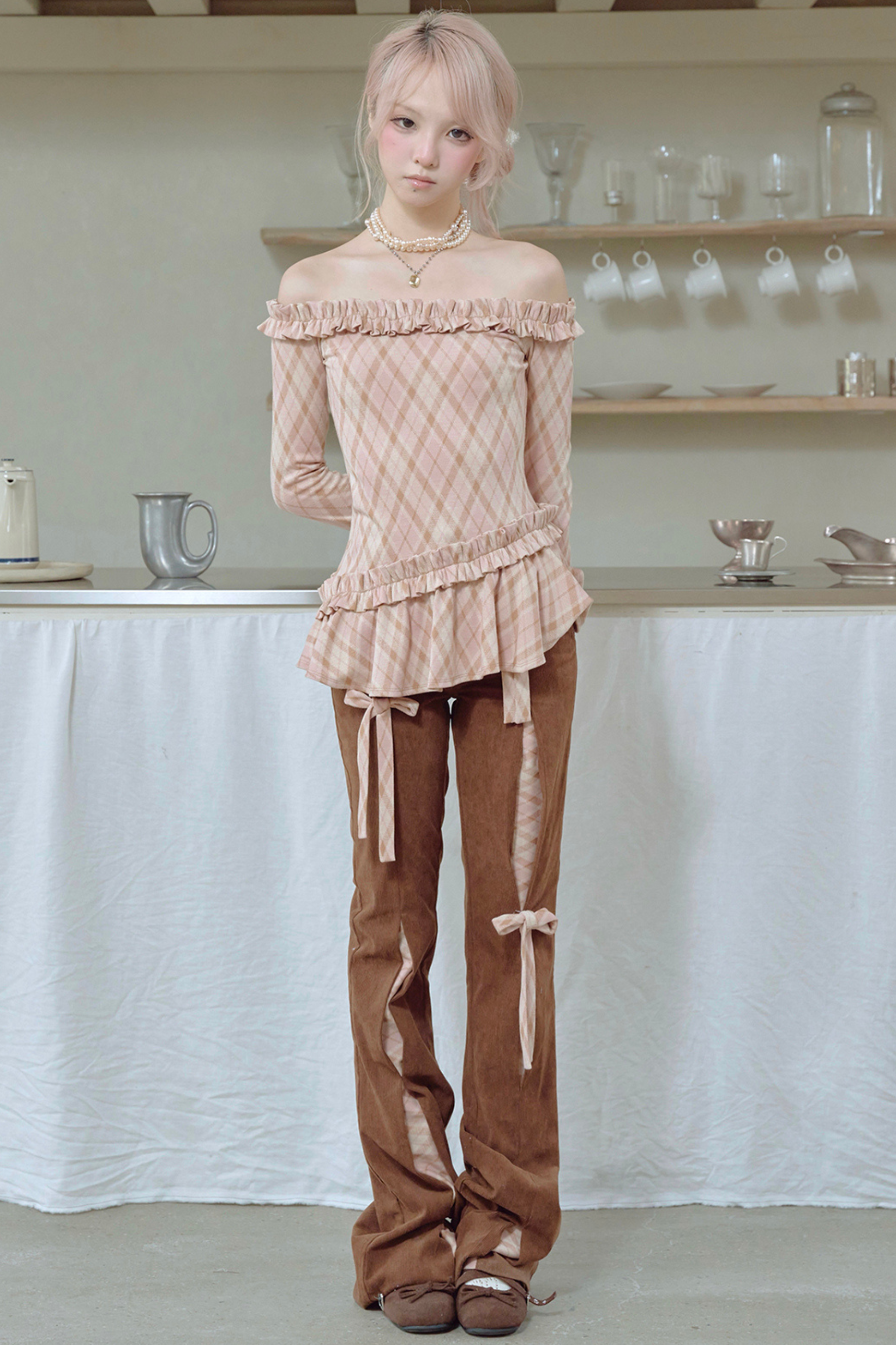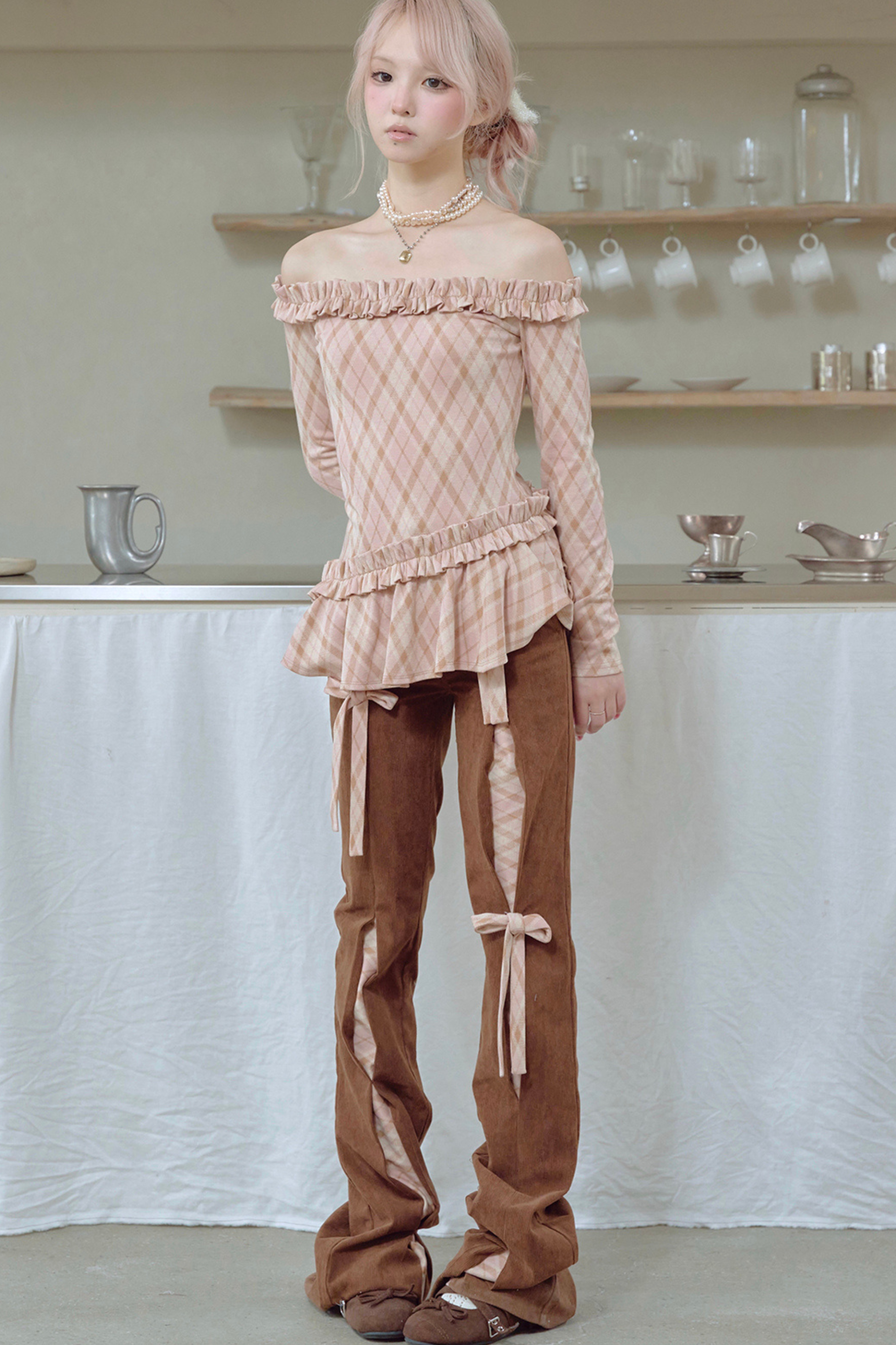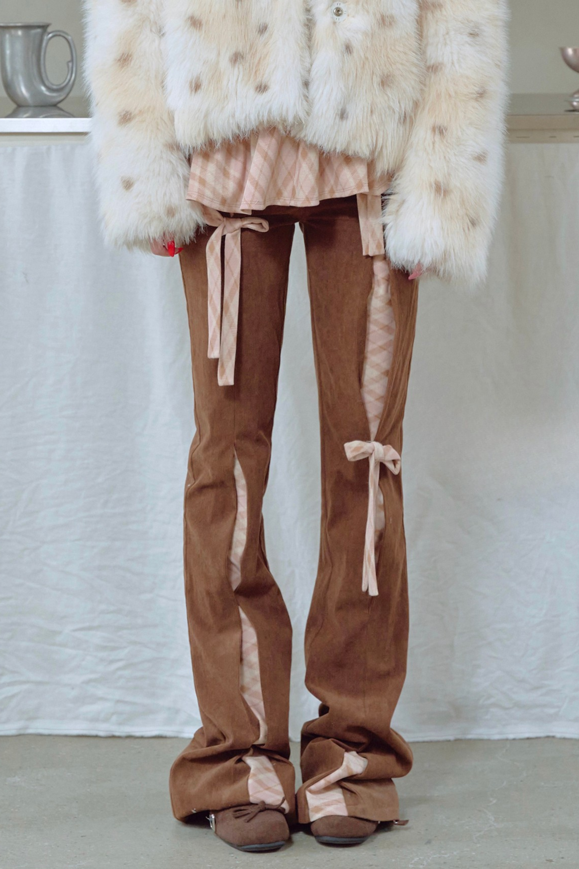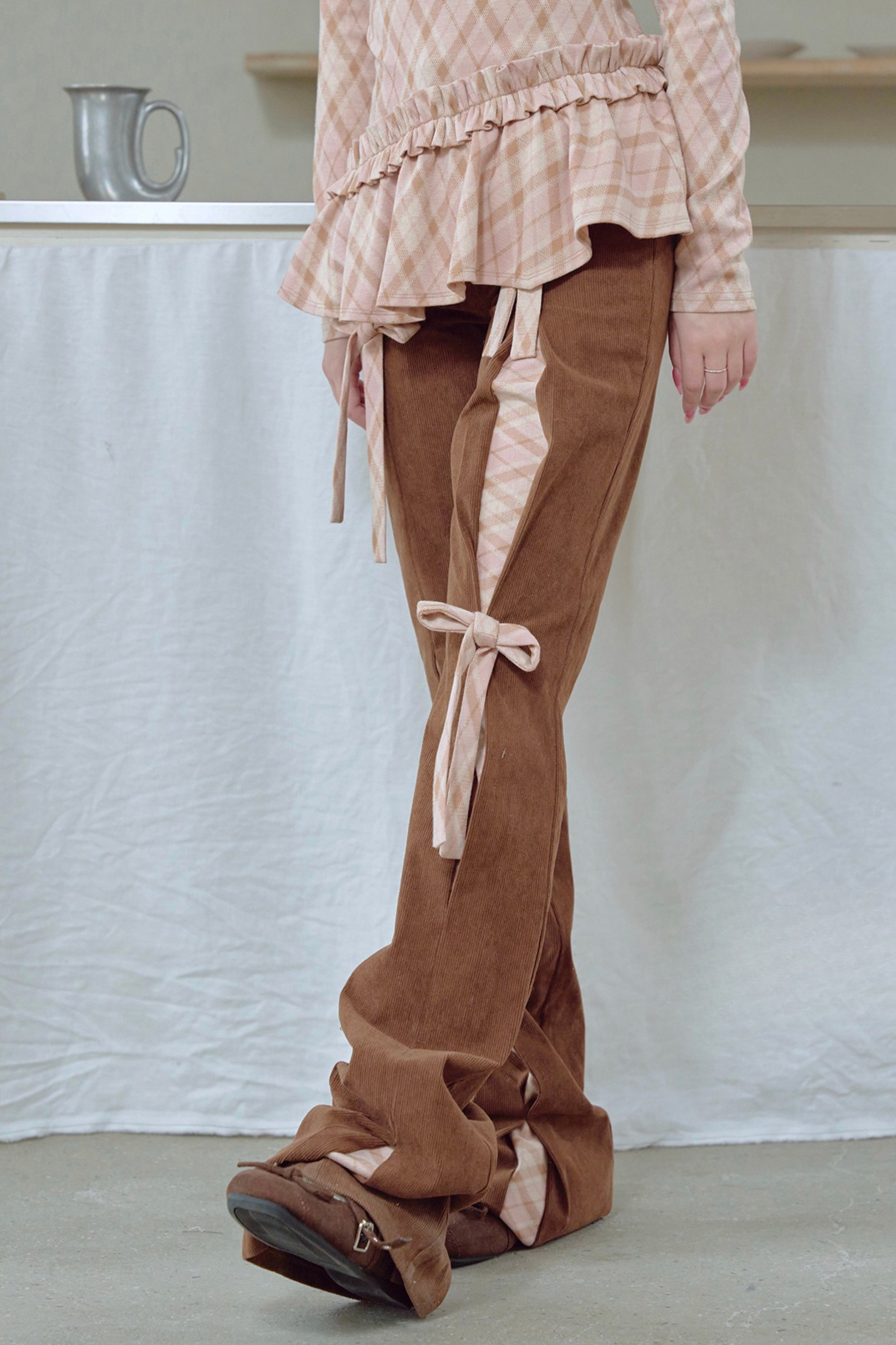 コーデュロイリボンフレアパンツ