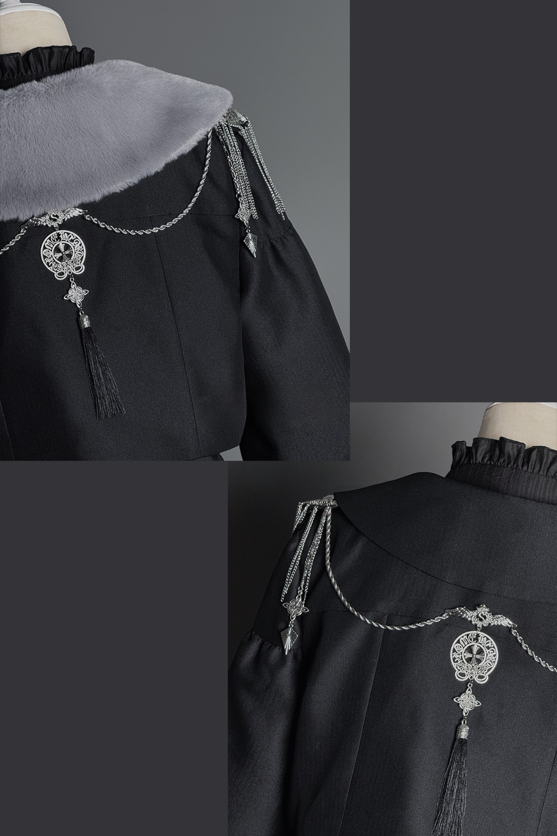 ❤︎【1月8日予約締切】ダークナイトバトラーゴシックシリーズファーカラー付きショートジャケット❤︎                                                ⚠️人気商品のためお届けに5ヶ月ほどかかってしまう場合がございます