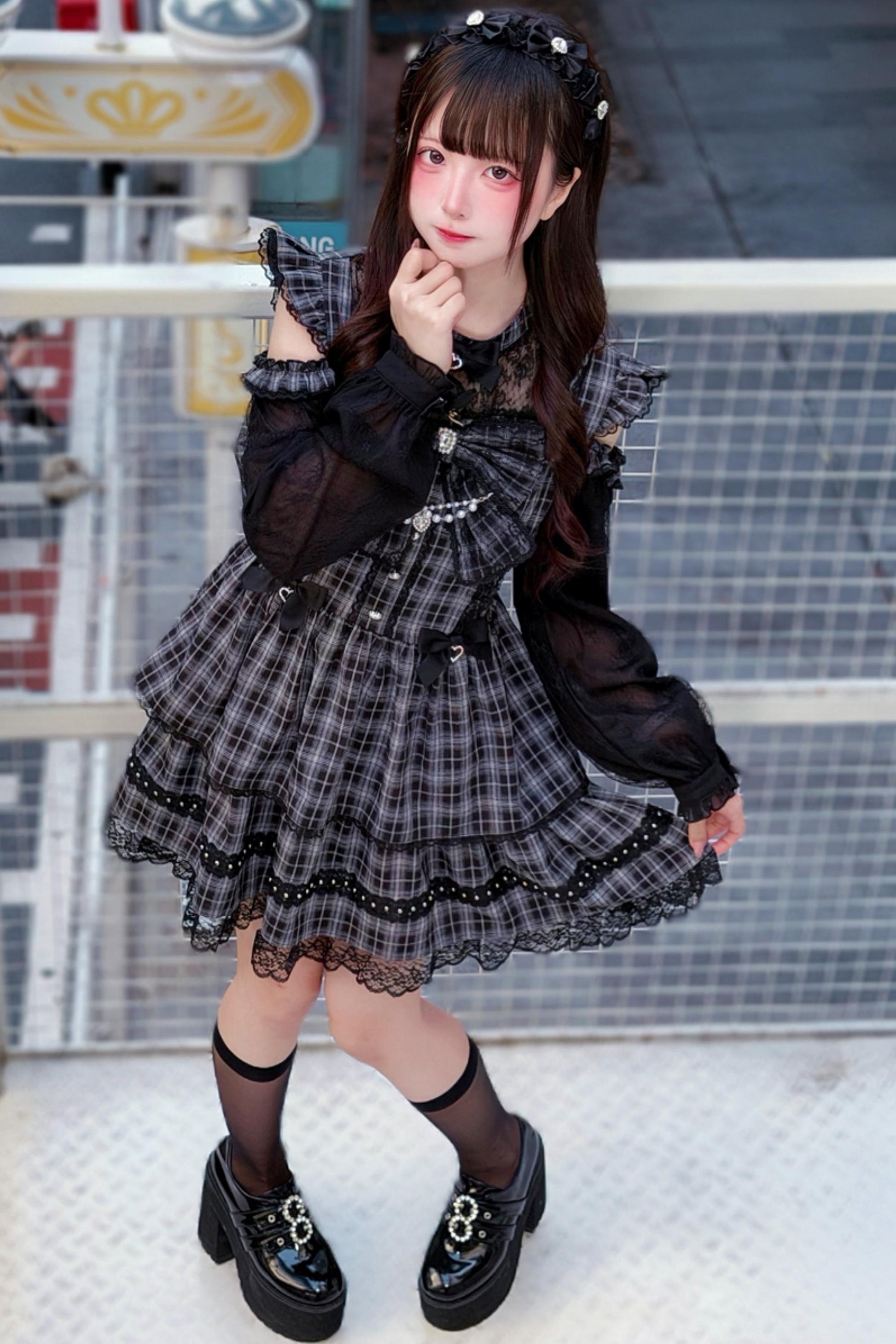 Elegantes Dark Kawaii Kleid + Kopfschmuck