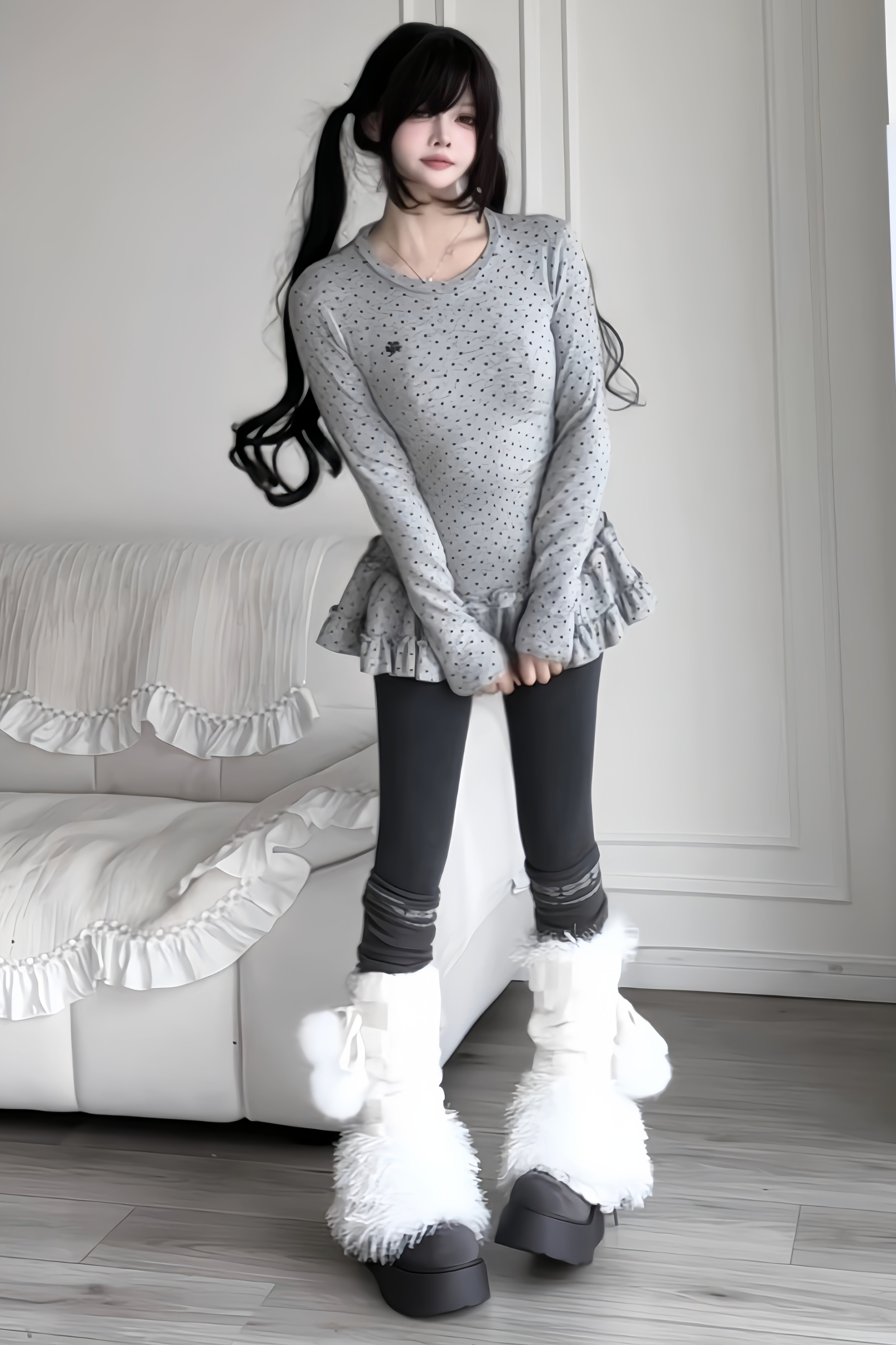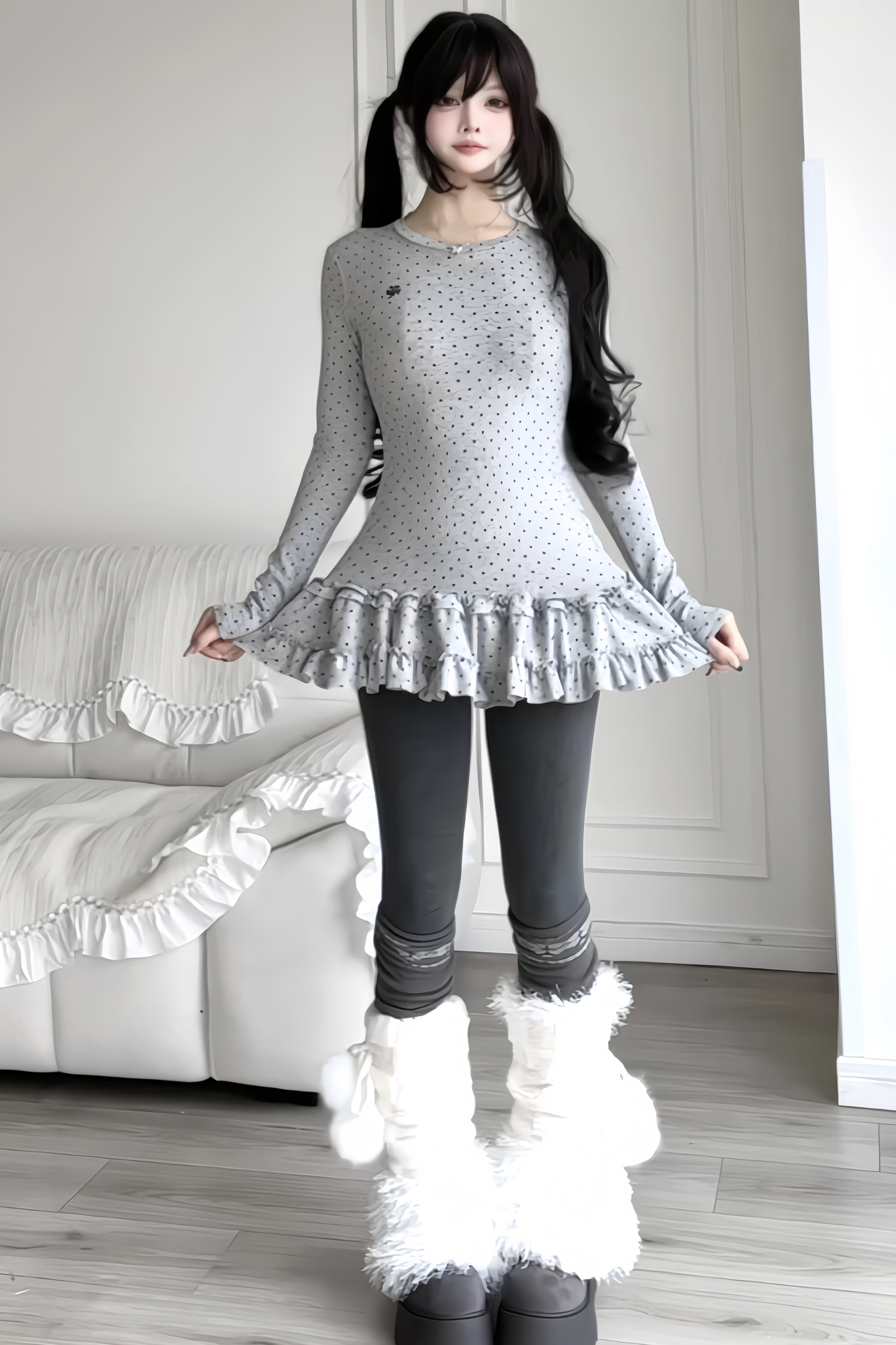 ❤Schlankes Punktmuster-Oberteil mit Rüschen❤
