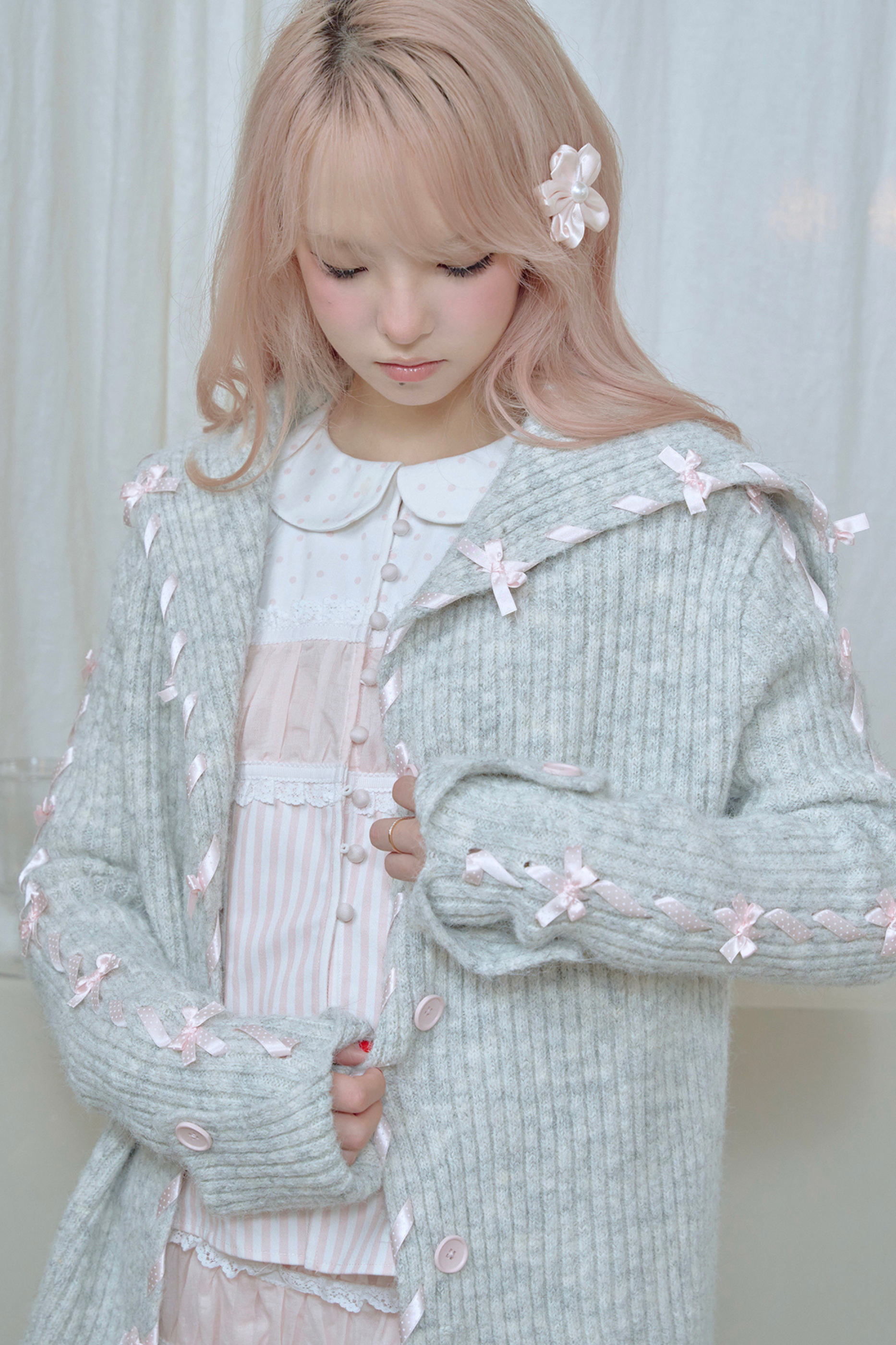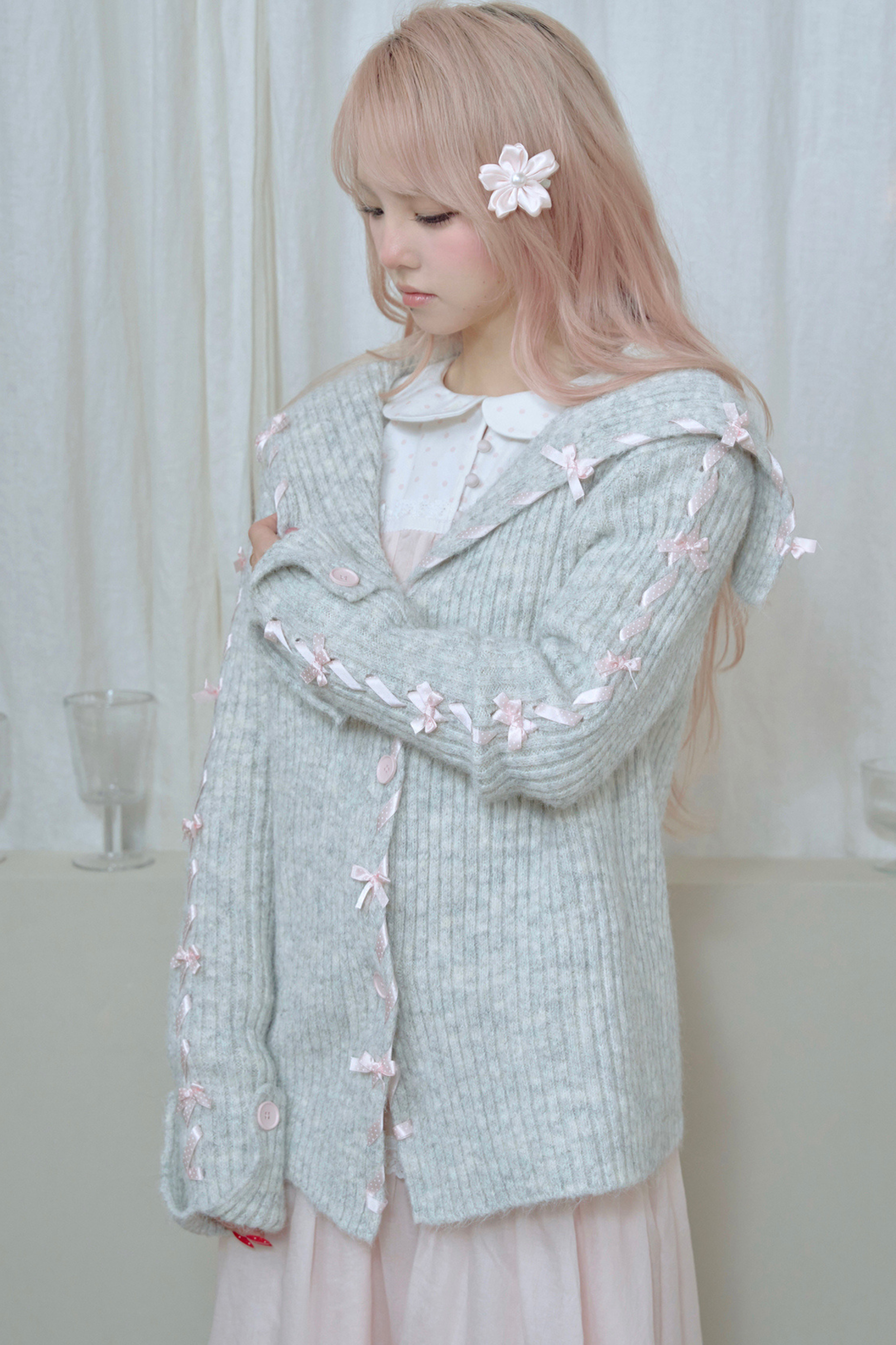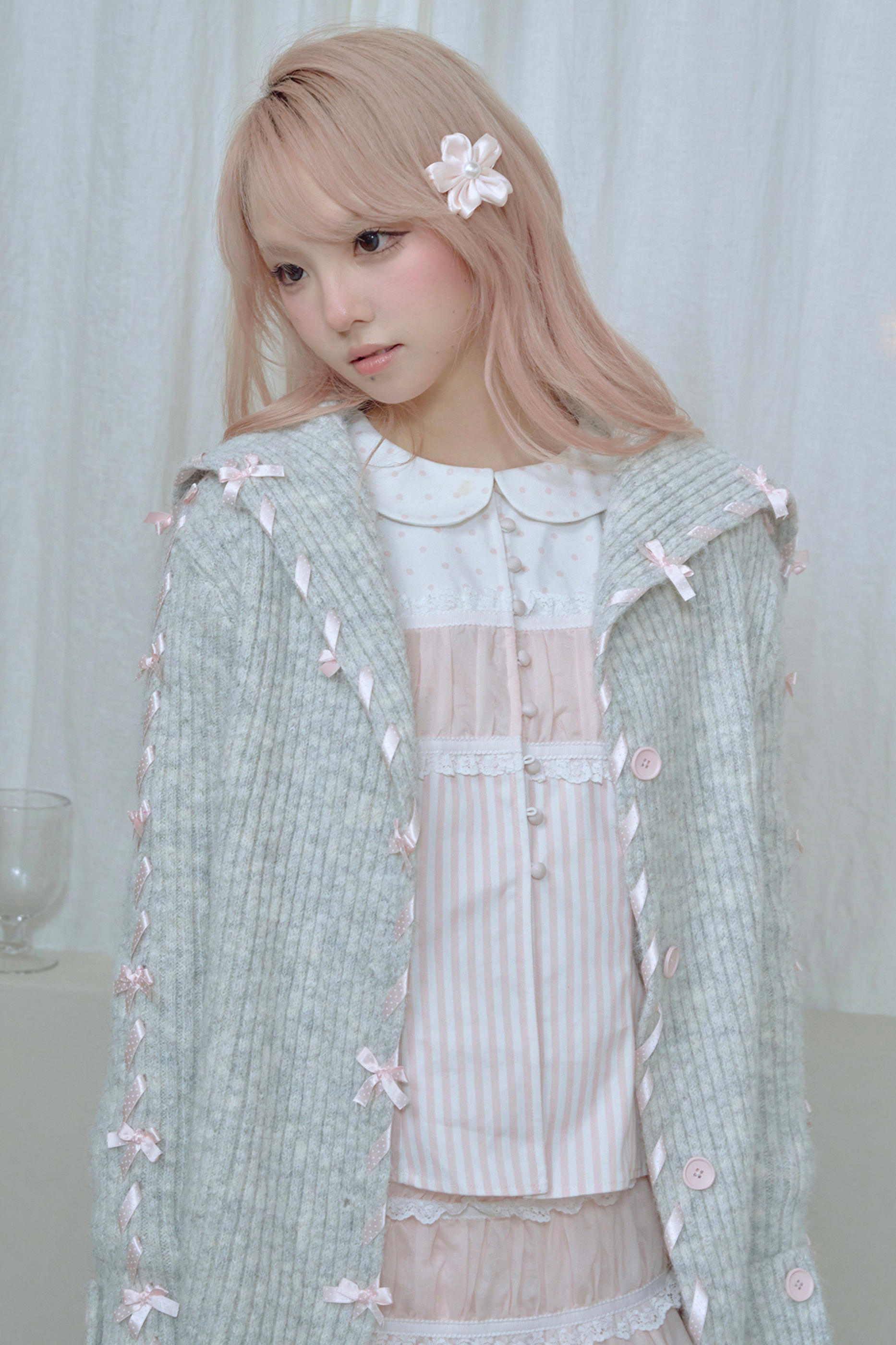 ❤ レースアップラインリボンニットカーディガン❤