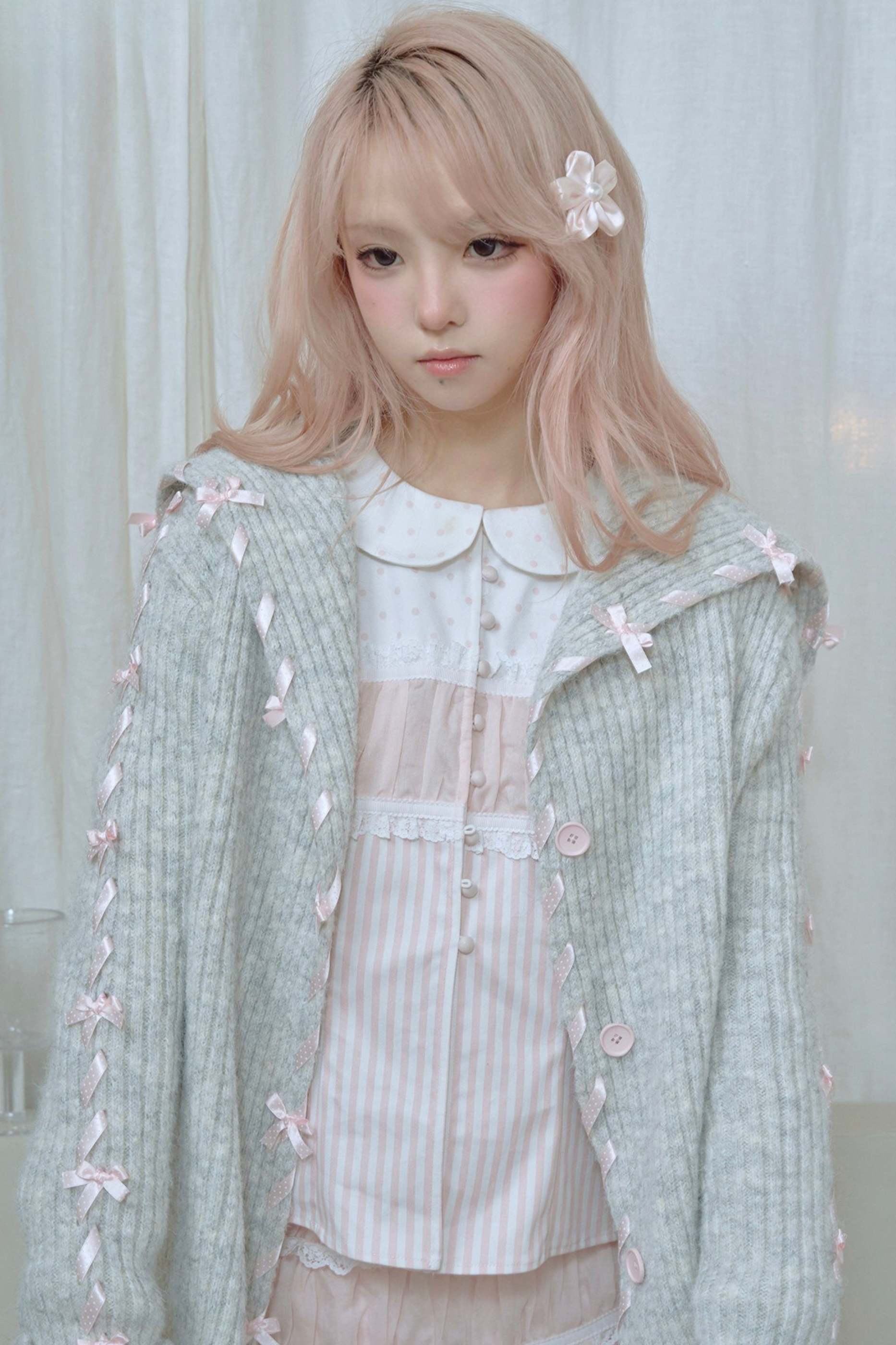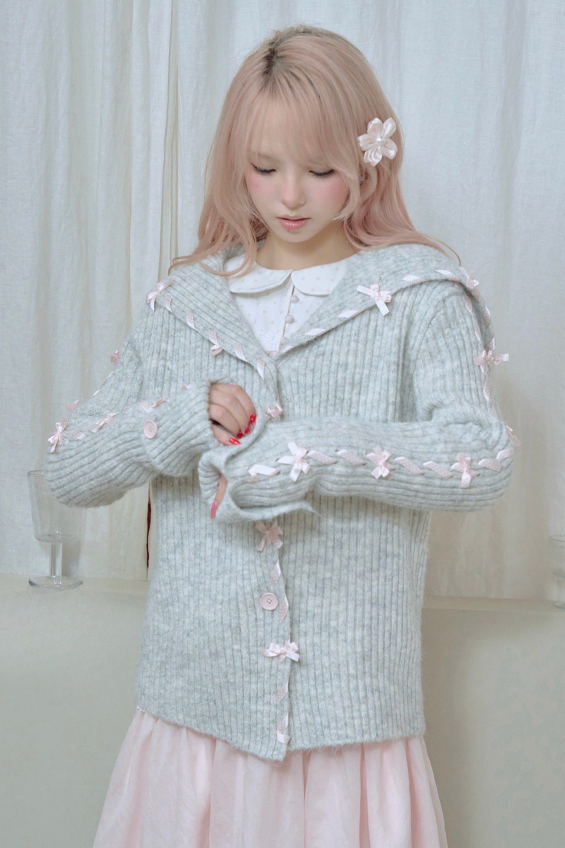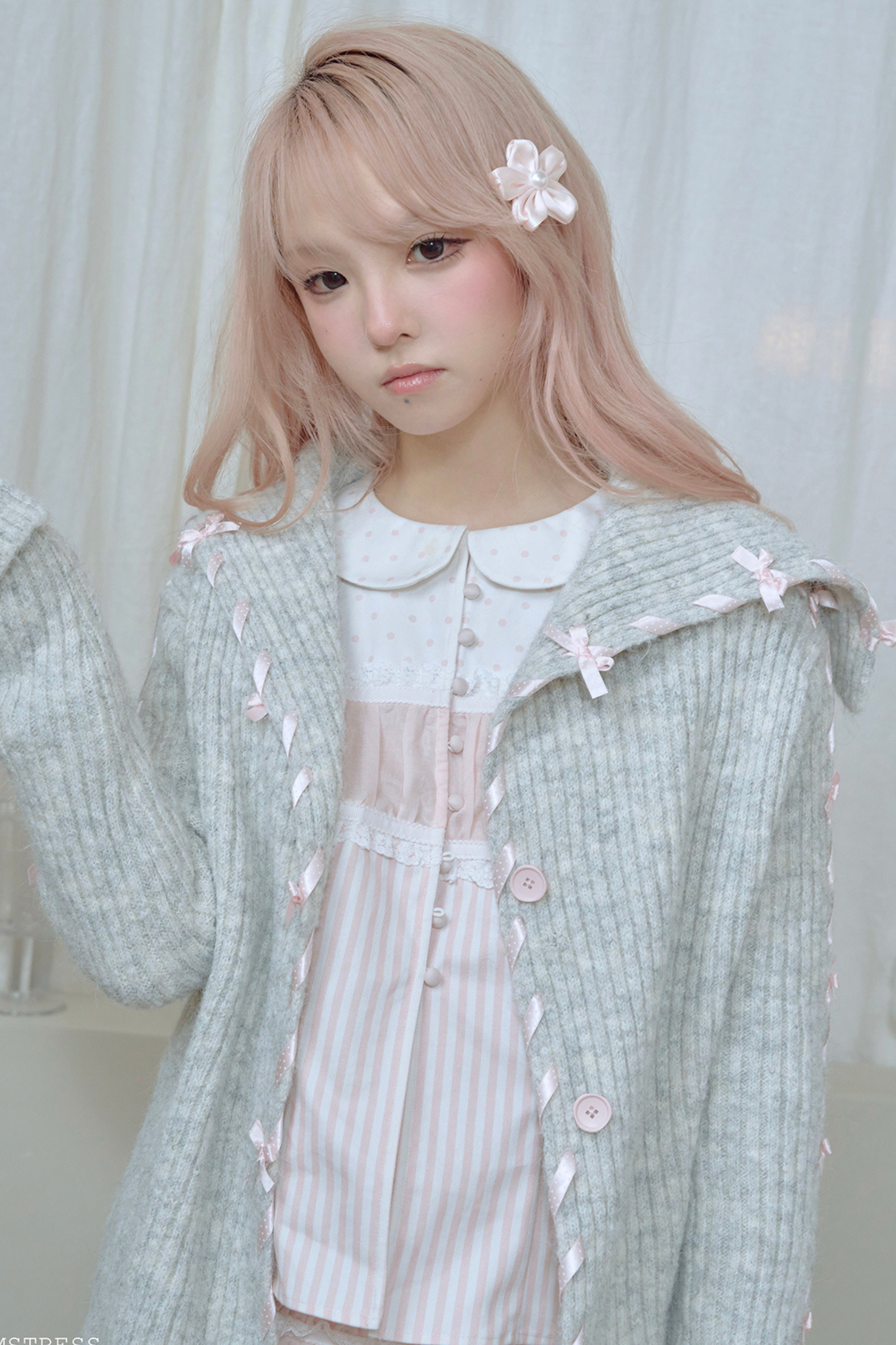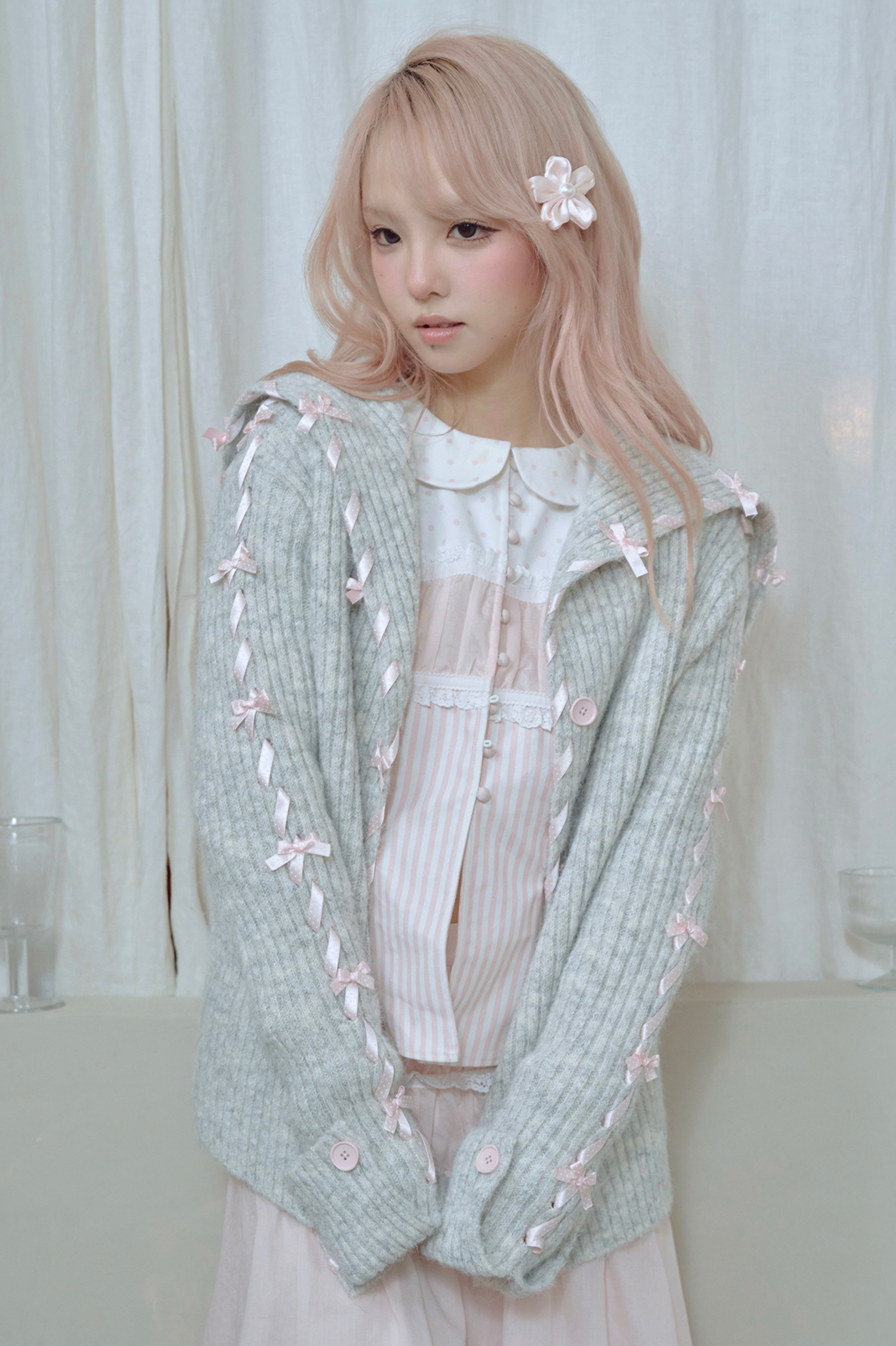 ❤ レースアップラインリボンニットカーディガン❤