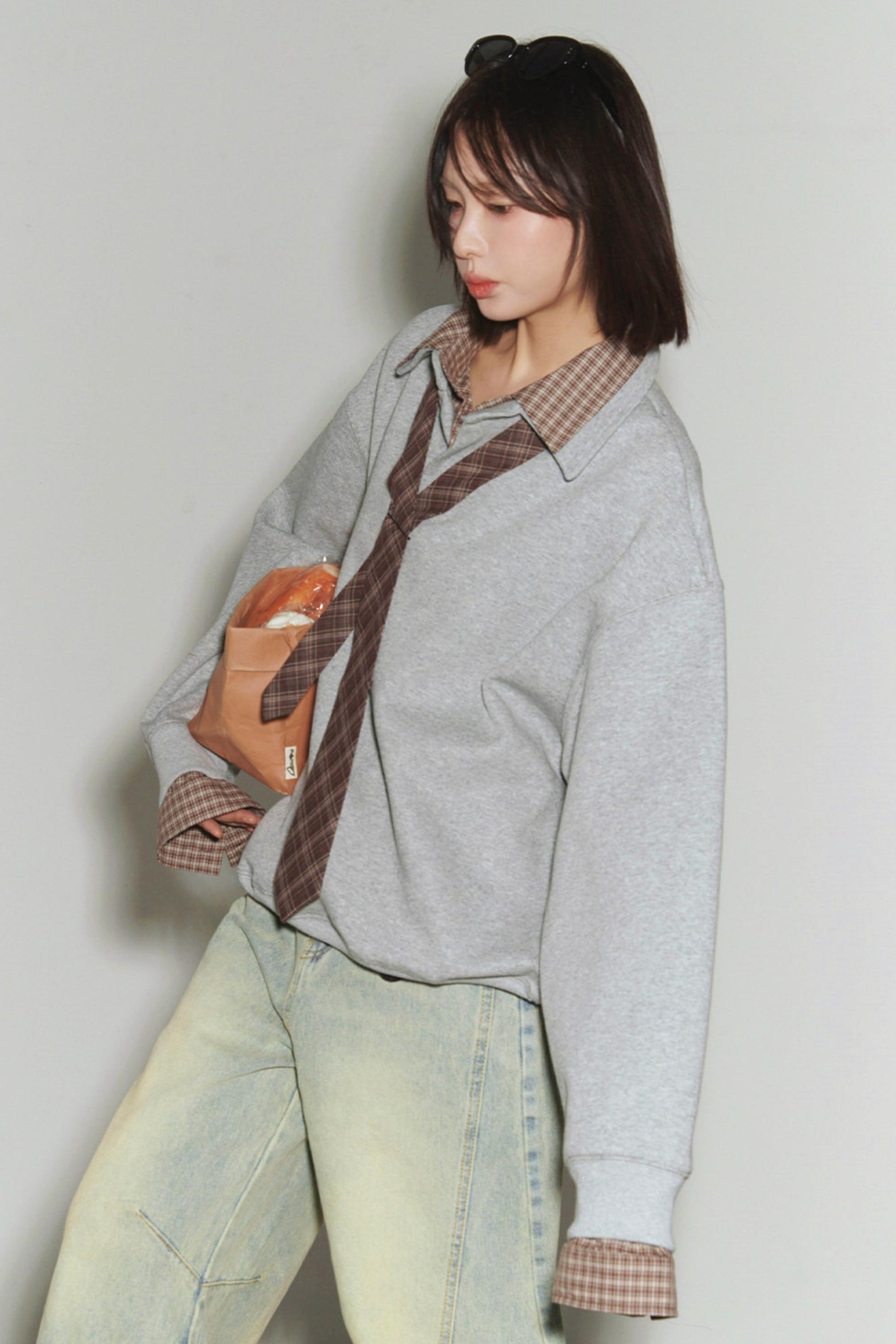 Karo-Patchwork-Polo-Sweatshirt