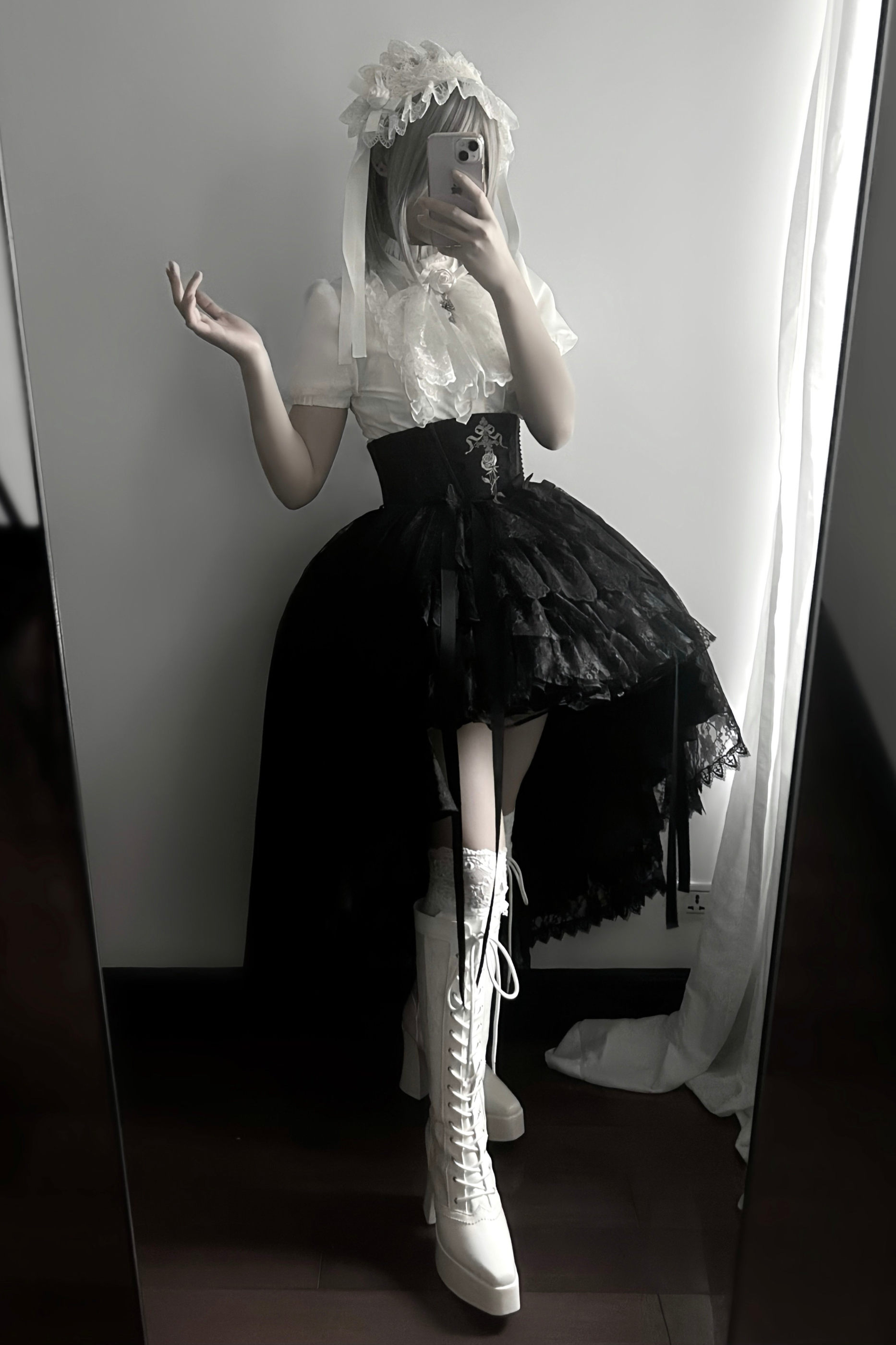 【Vorbestellung bis 18. März】 Dark Kawaii Gothic Lolita Rock + Shirt + Haarband + Hut + Ärmel