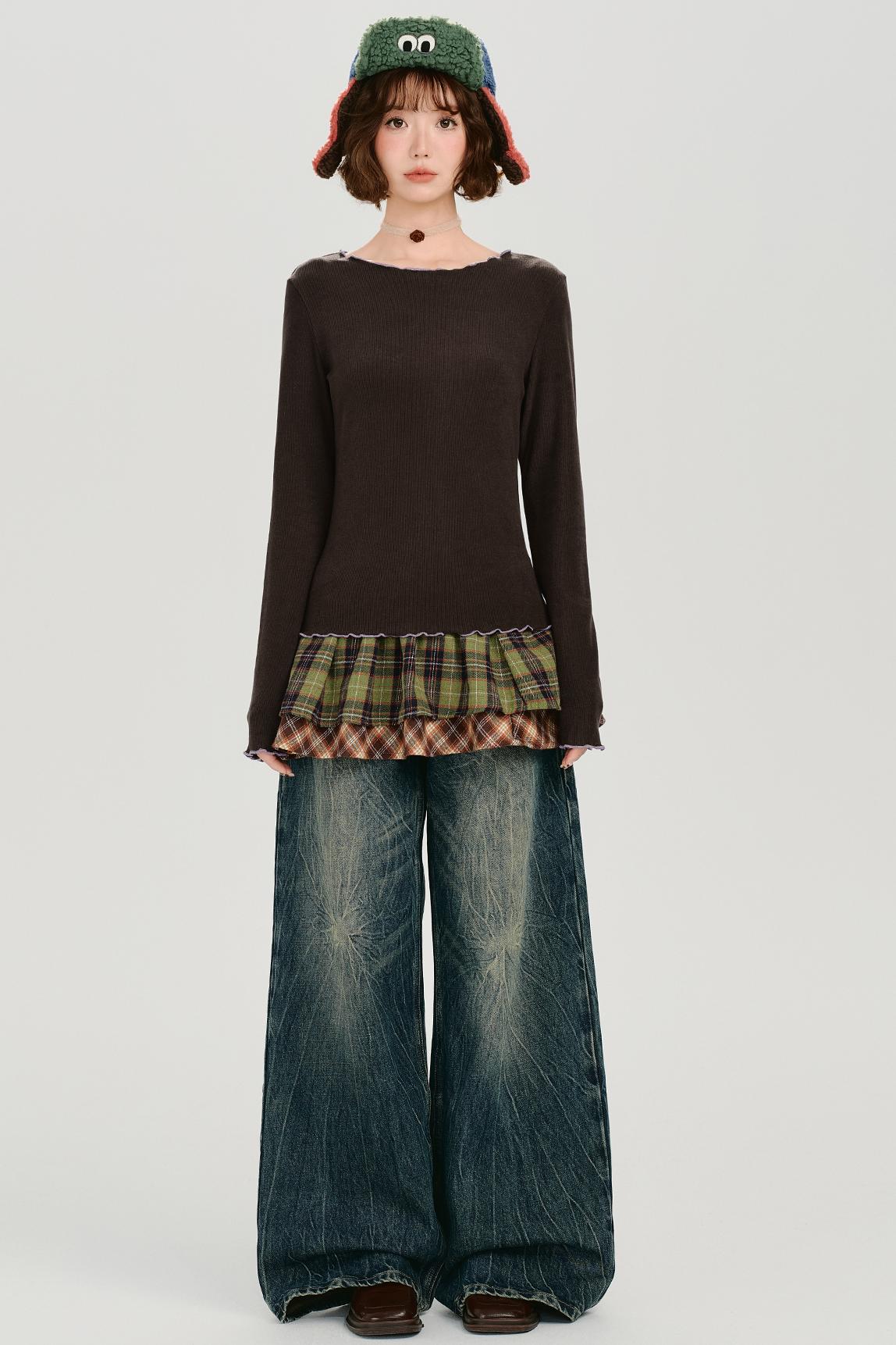 レトロベーシックソフトロングスリーブトップス