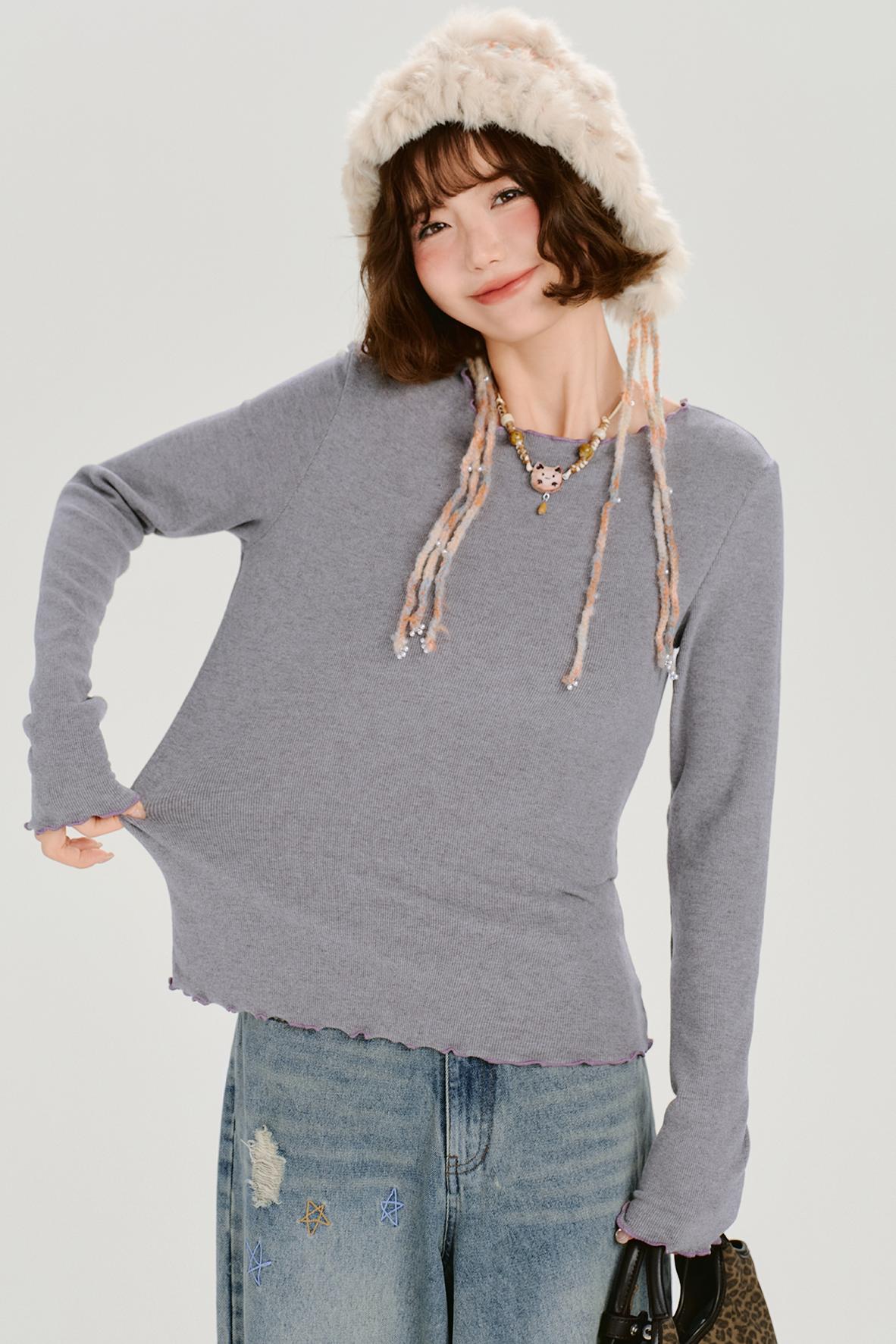 ❤レトロベーシックソフトロングスリーブトップス❤