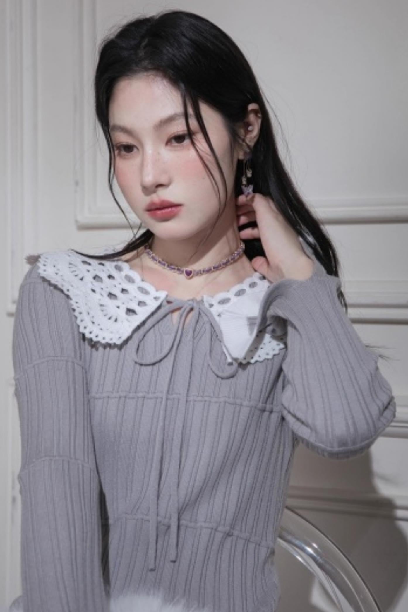 ❤スーチュアンミストグレイフリルロングドレス❤