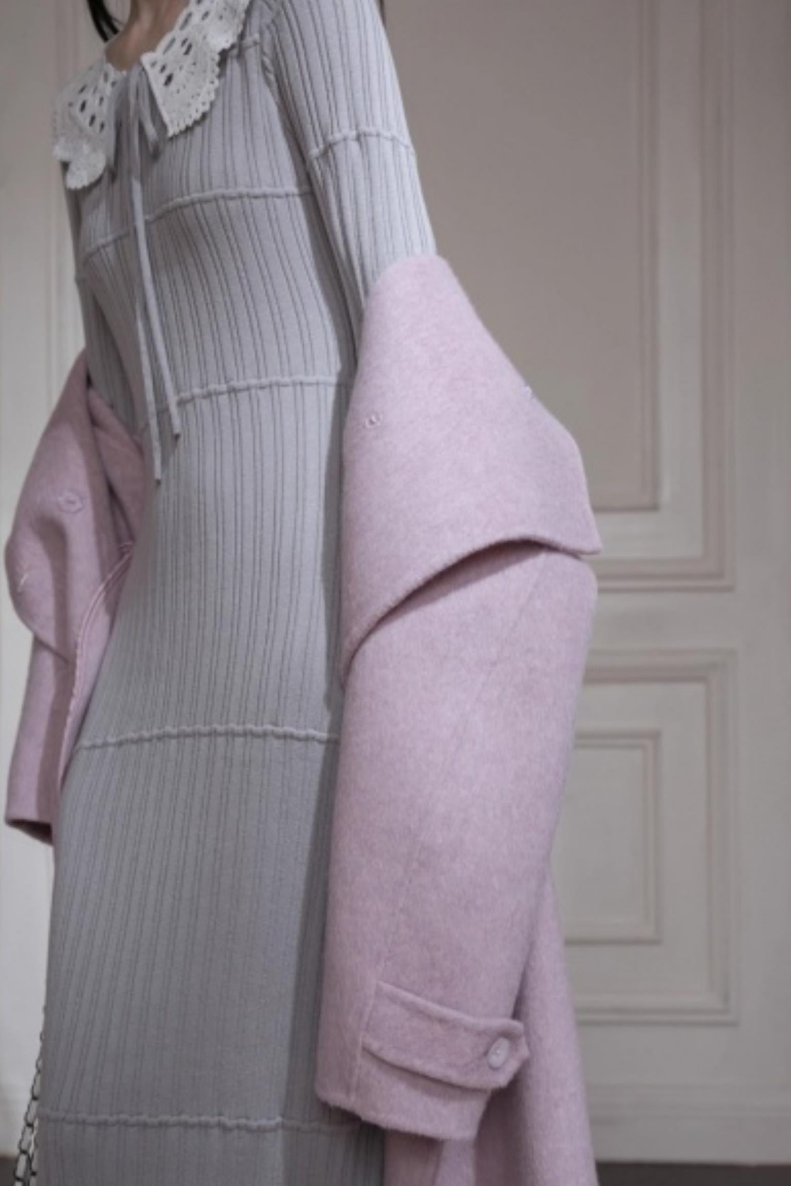 スーチュアンミストグレイフリルロングドレス