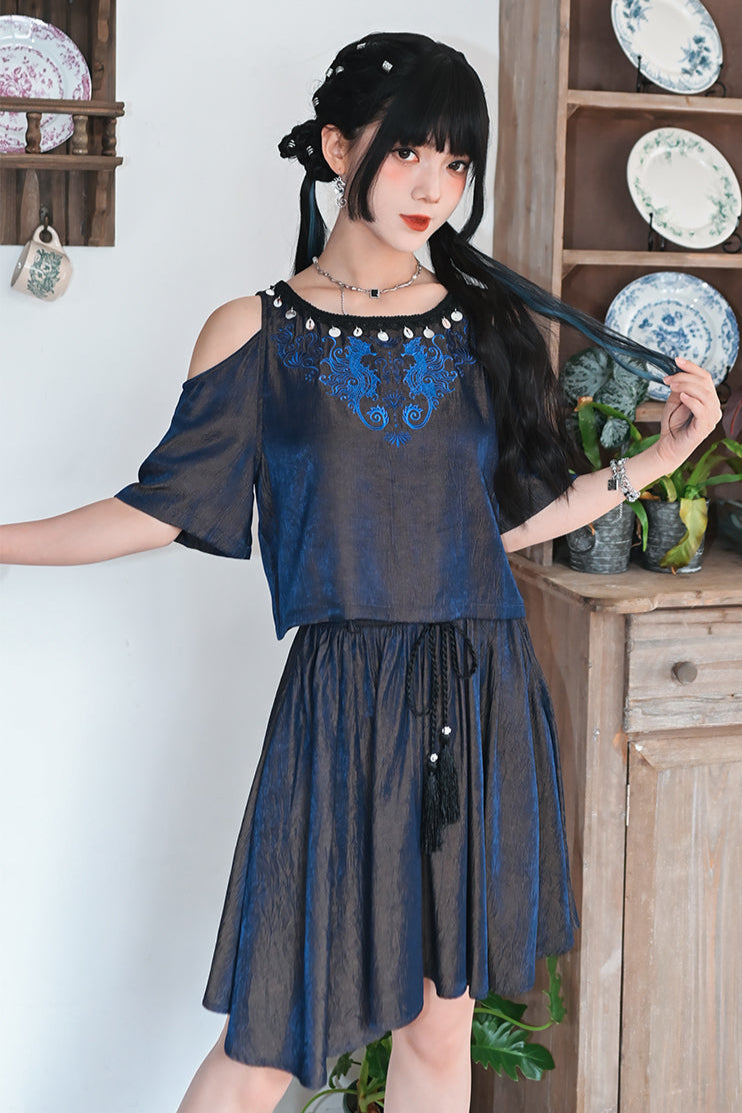 ❤チャイナデザインオフショルダートップス+タッセルスカート❤