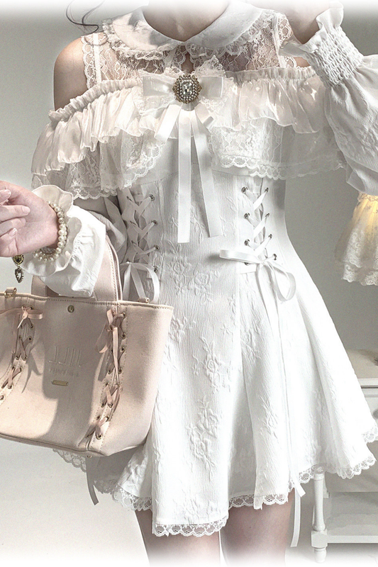 [Vorbestellung bis 13. März] Süßes Tee-Spitzen-Prinzessinnenärmel-Hemd + Kuchenrock
