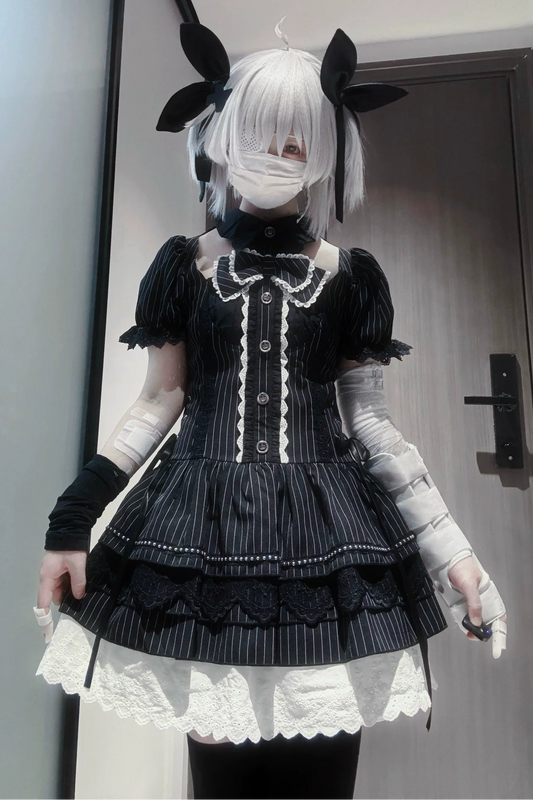 [Vorbestellung bis 20. März] Hasen-Gothic-Vampire-Lolita-Rock + Gestreiftes Hemd + Hut