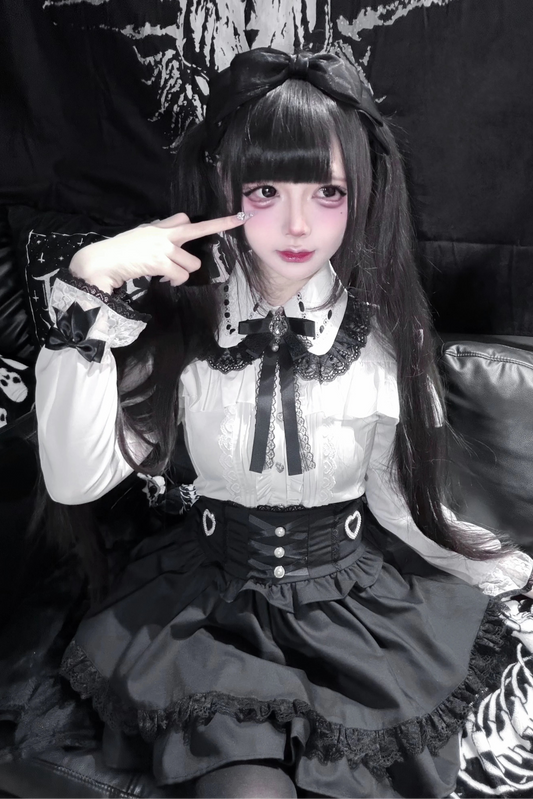 Dark Kawaii Long Ärmel Hemd + High Waist Rock + Band Necktie