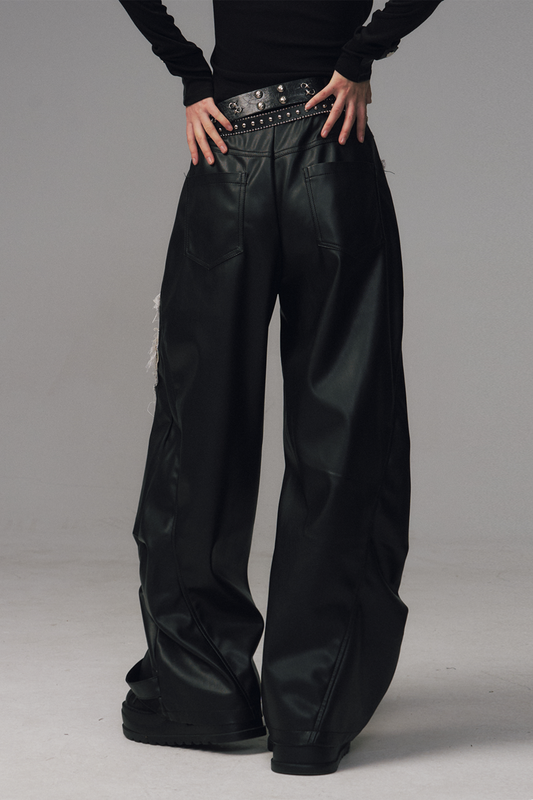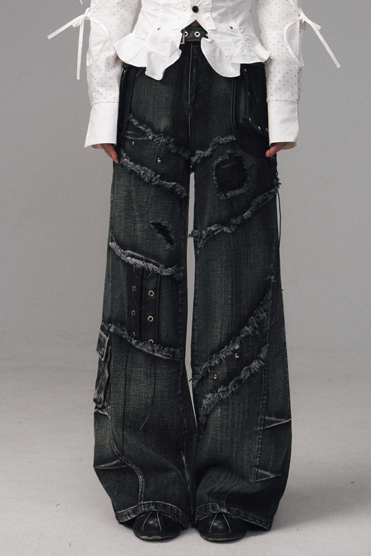 Retro-Karo-Denimhose + Beinwärmer + Karo-Vorhang