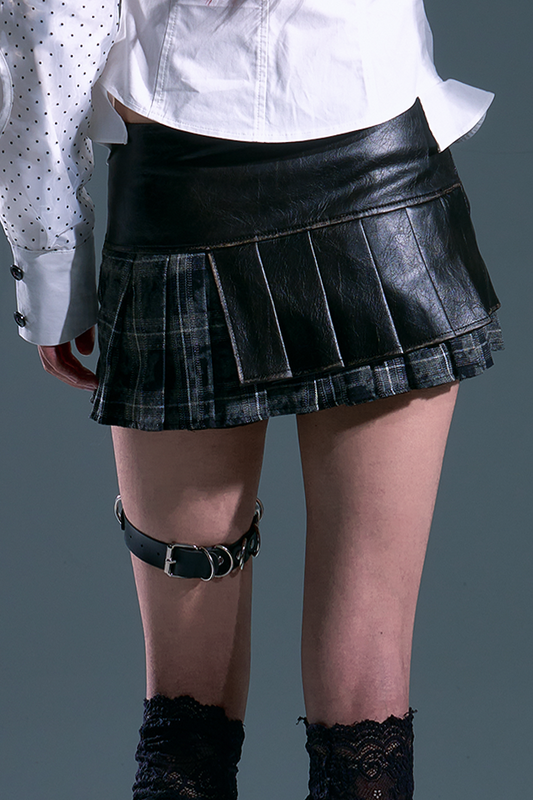 Diagonal Plaid Plissee Rock + Leg Warmers