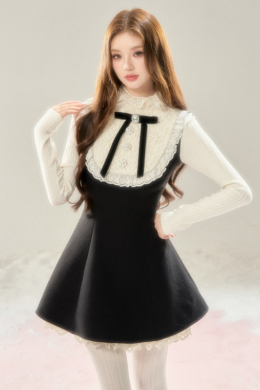 Blaues Spitzen-Maid-Satincardigan-Kleid + Cardigan