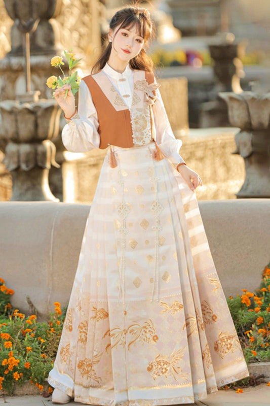 Goldfisch-Retro-China-Mädchenhaft-Weste + Oberteil + Rock