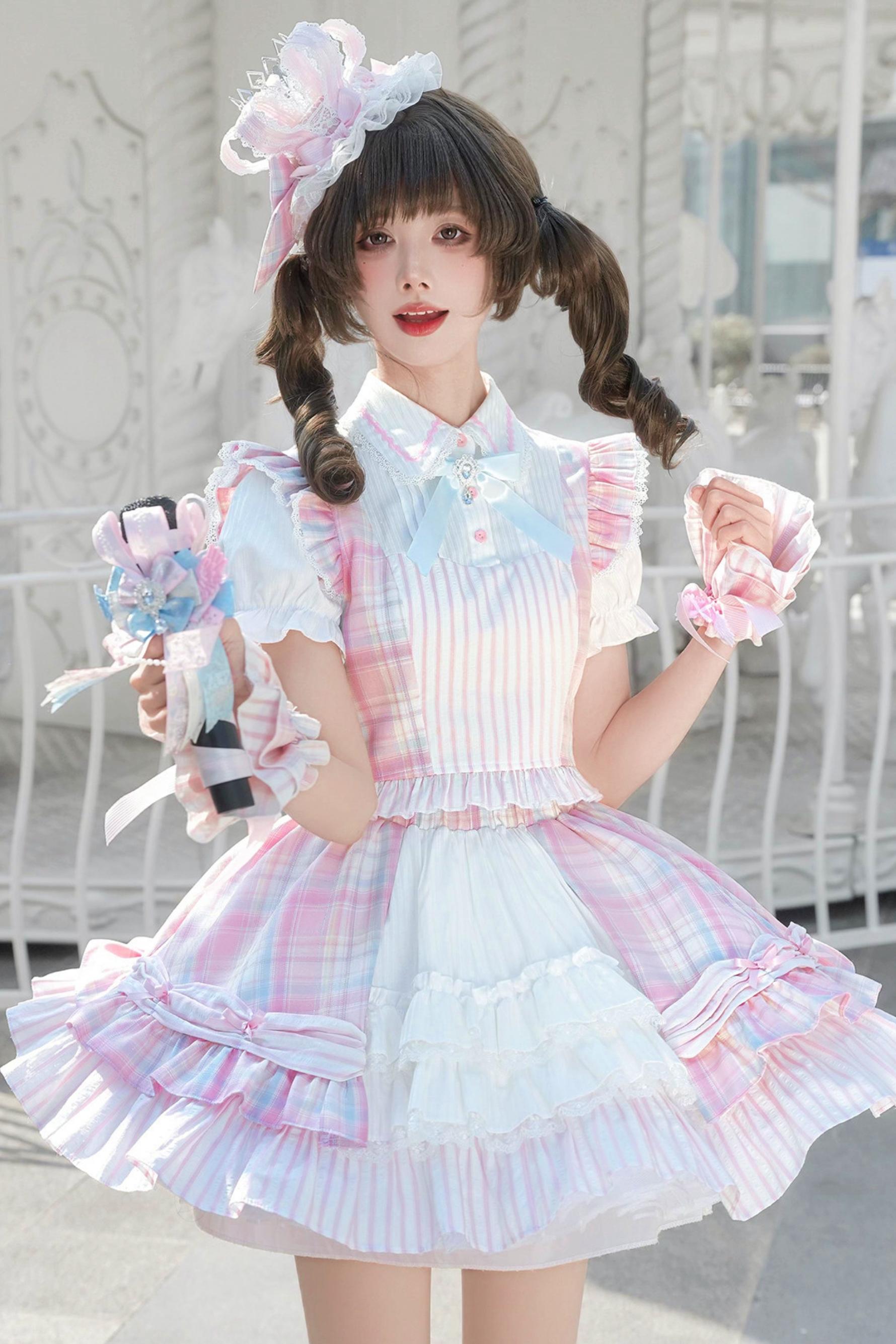 Süßes-Idol-Lolita-Rock + Oberteil + Gürtel + Beinabdeckungen