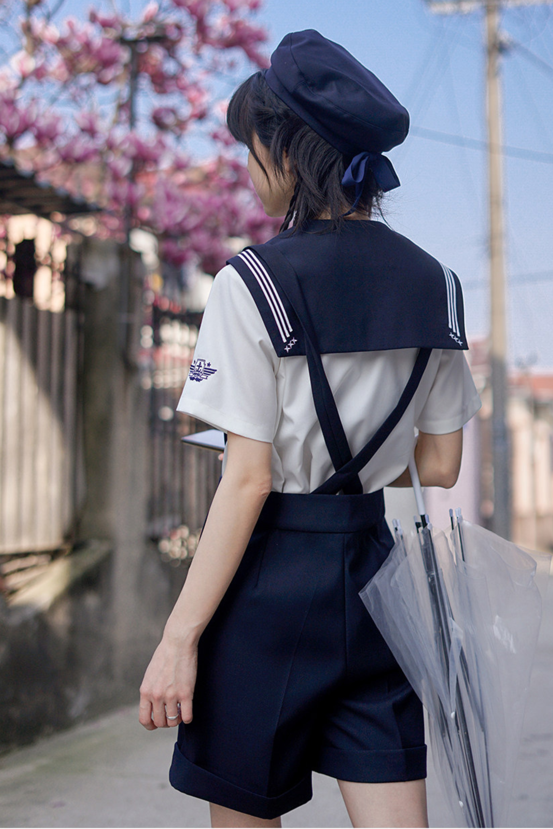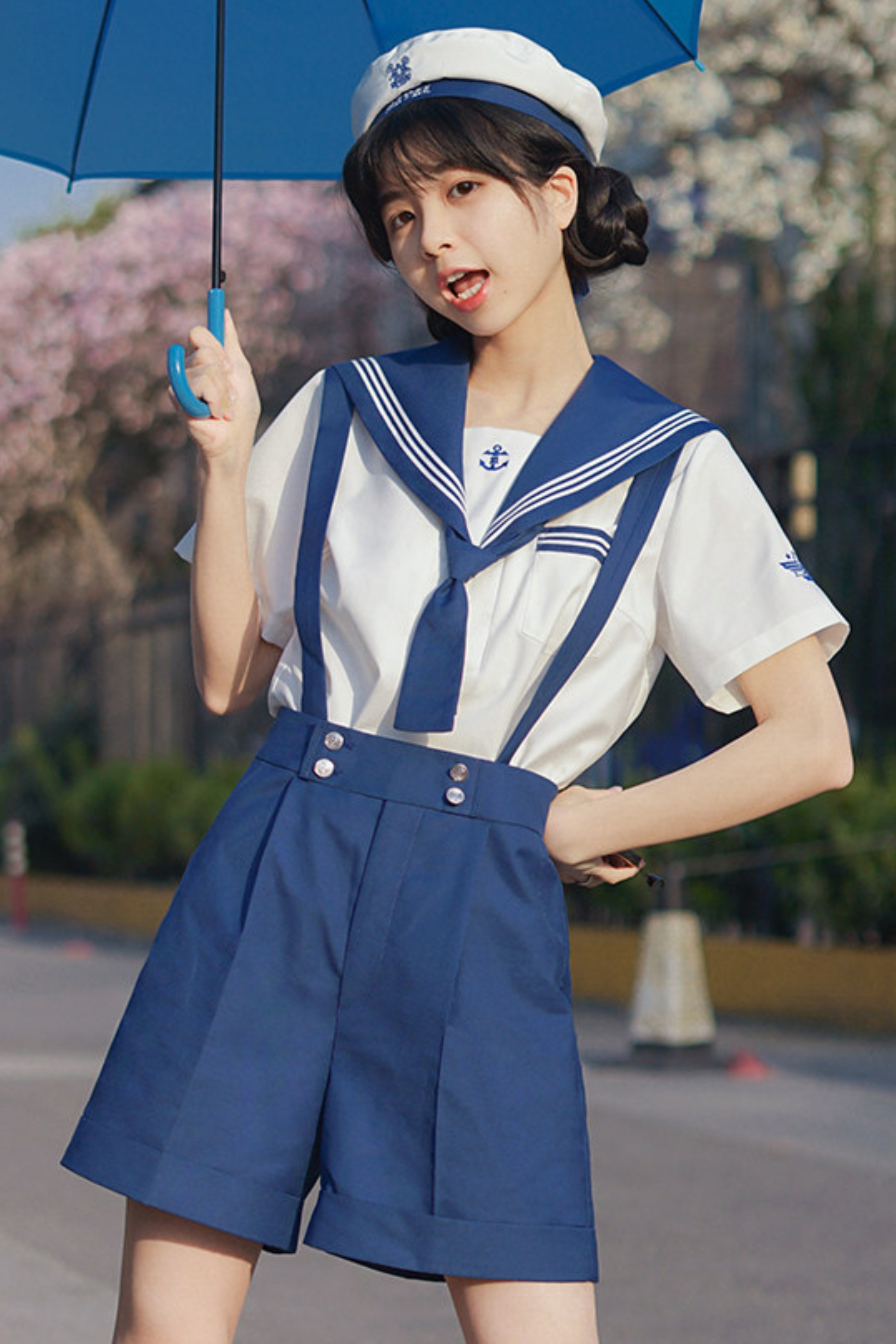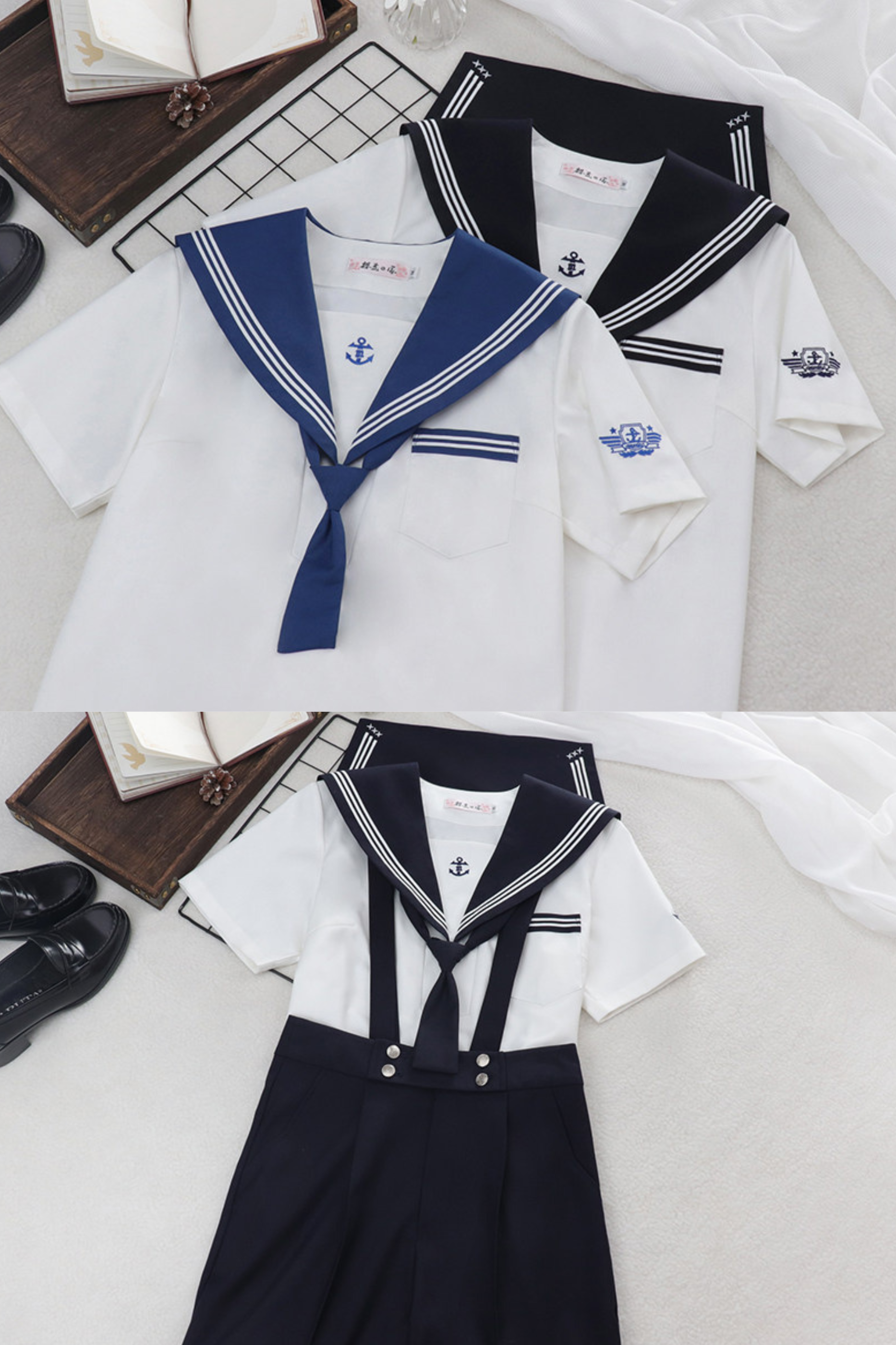 Matrosen-Hemd + Träger-Kurze Hose + Krawatte + Baskenmütze