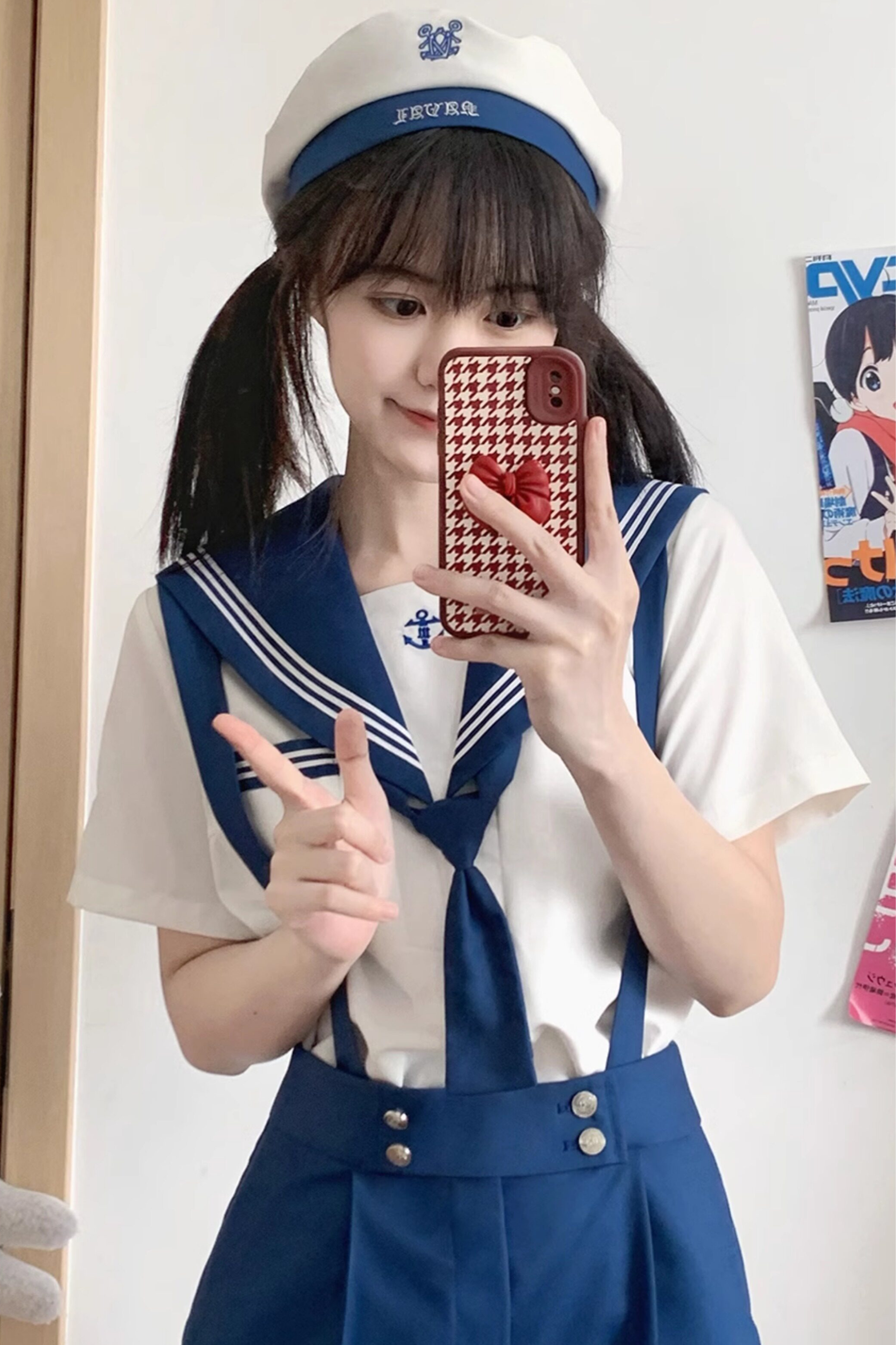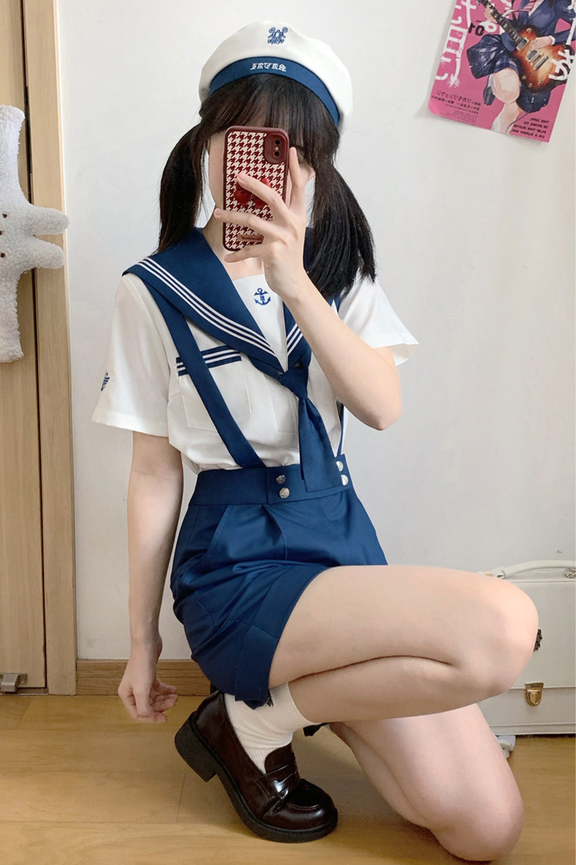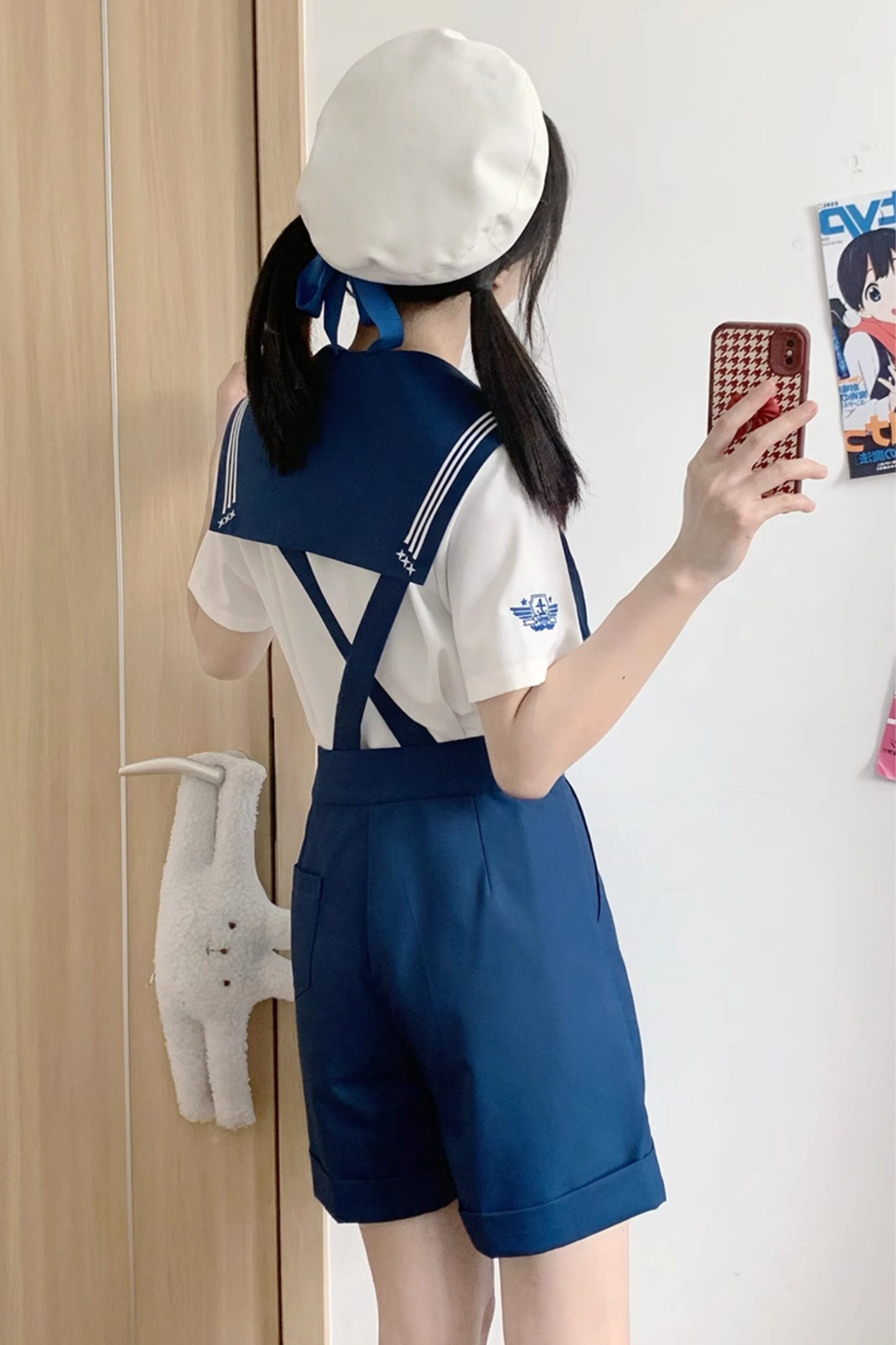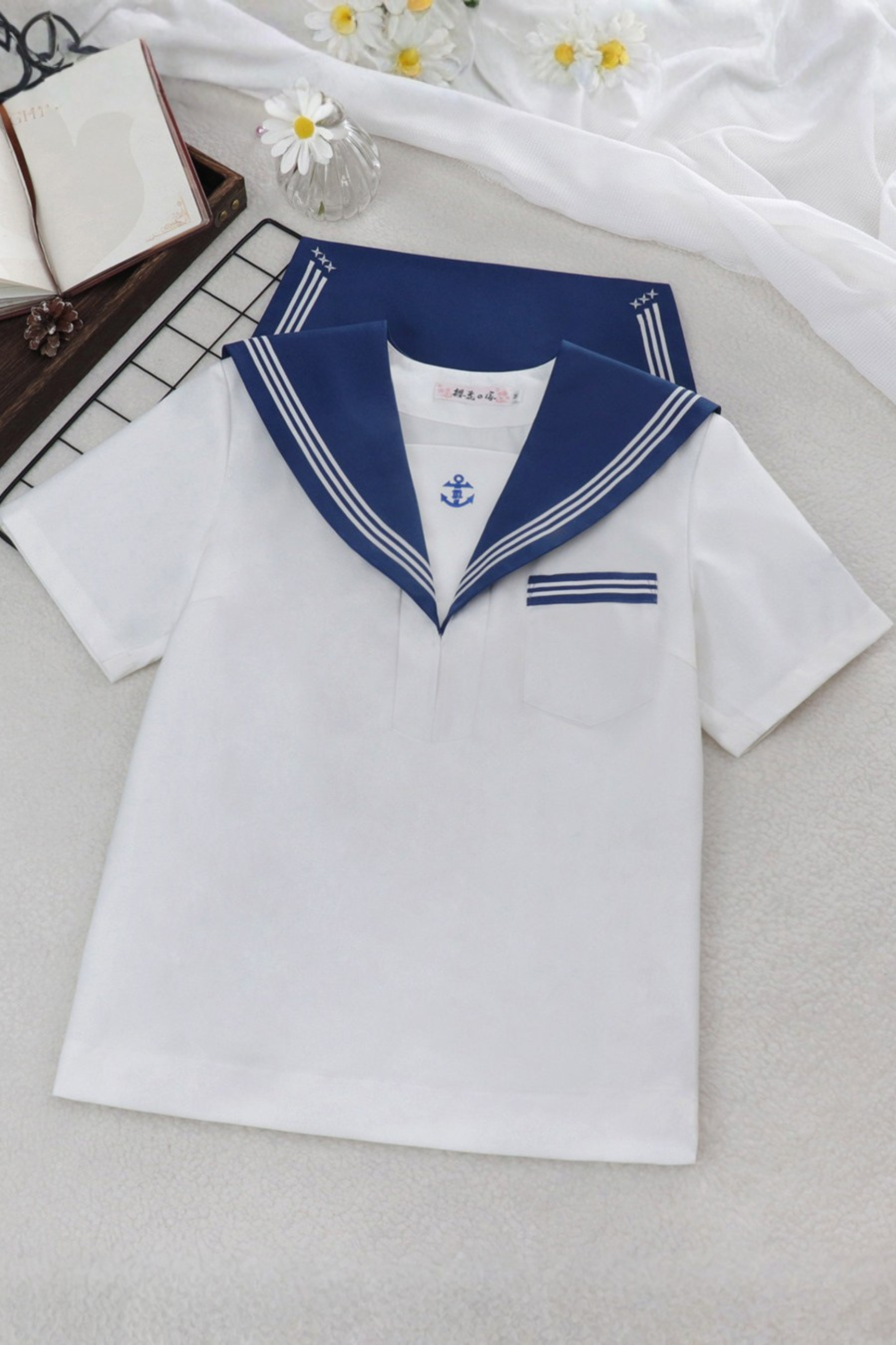 Matrosen-Hemd + Träger-Kurze Hose + Krawatte + Baskenmütze