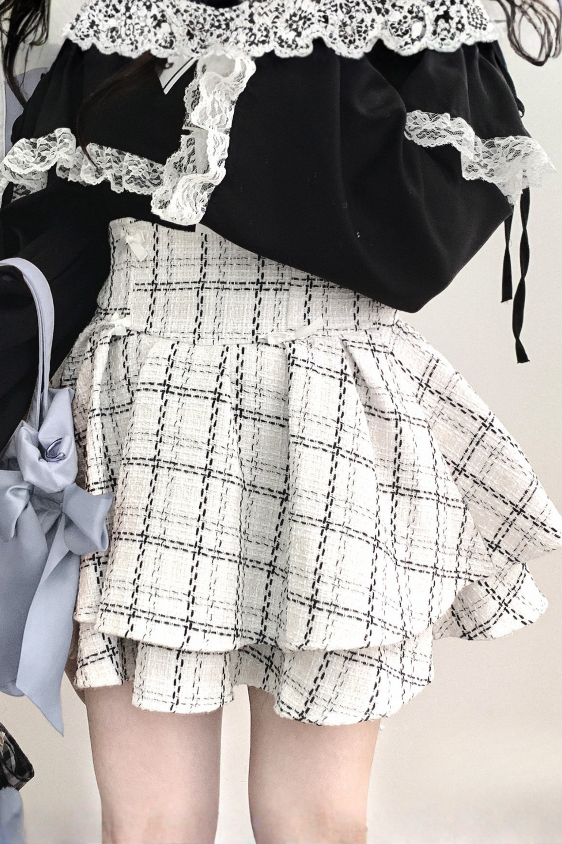 ❤ Karierter Tweed Puff Spitzenrock ❤
