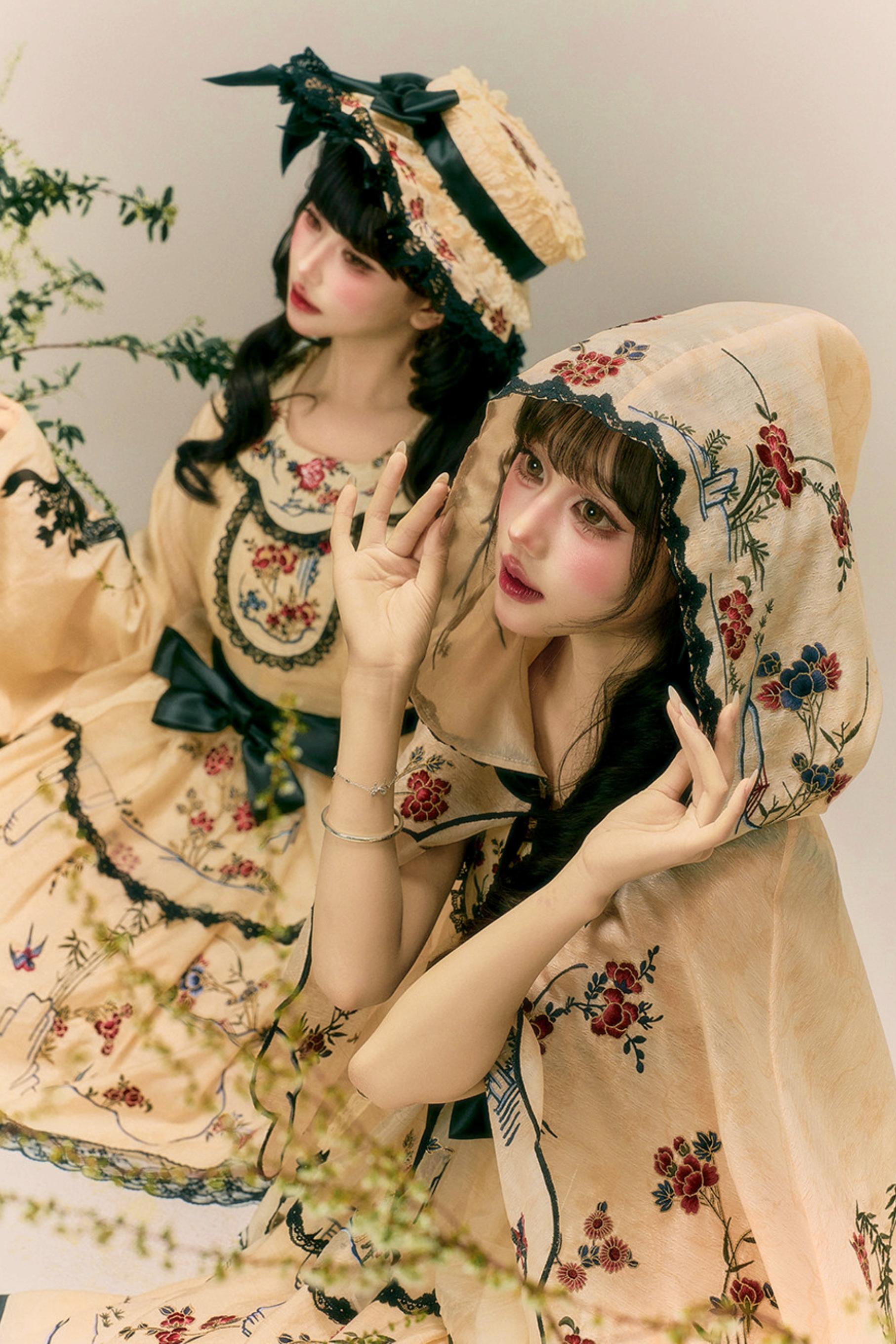 ❤燕と花の和風クラシカルドレス+ケープ+ハット❤