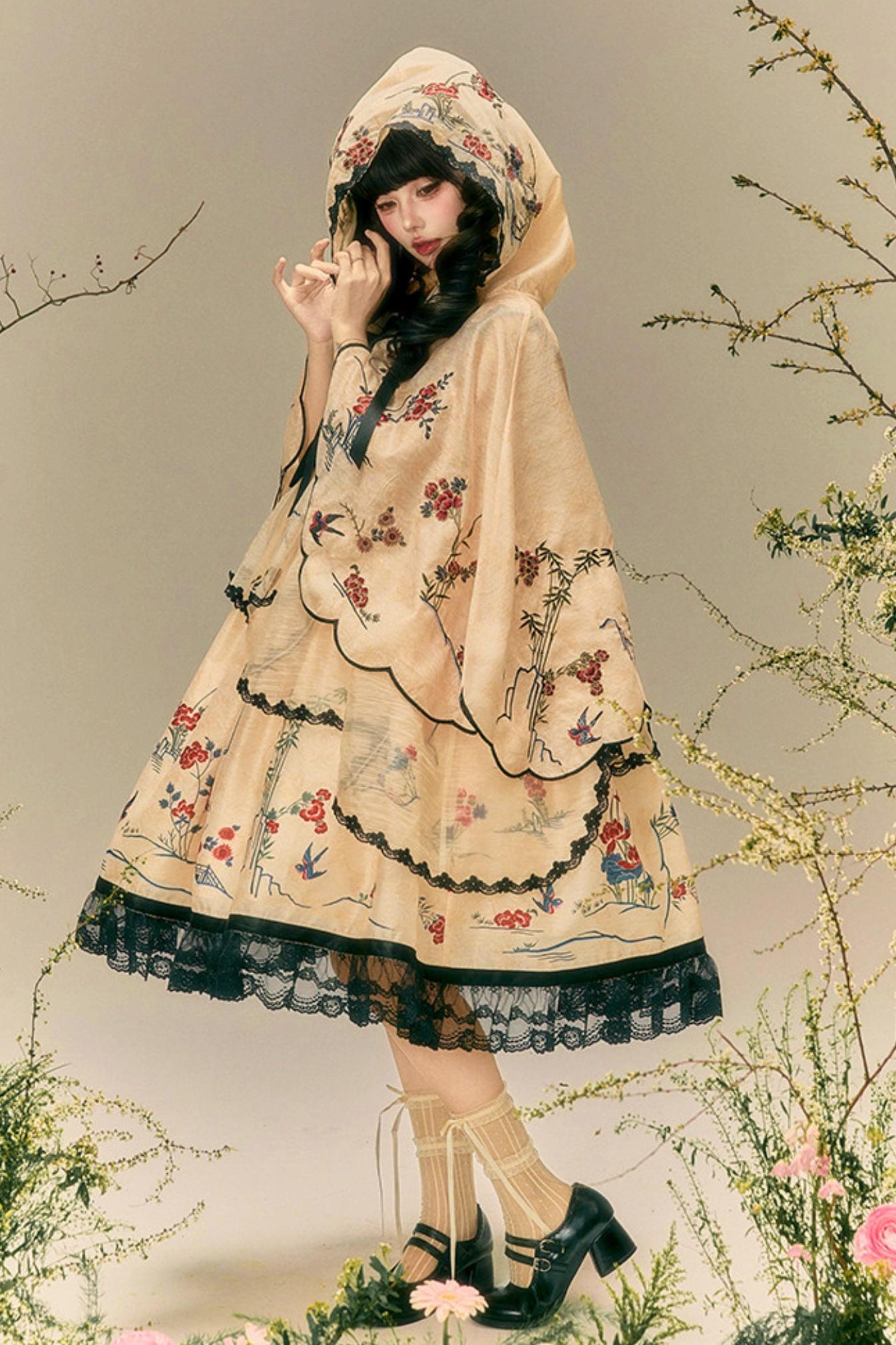 燕と花の和風クラシカルドレス+ケープ+ハット