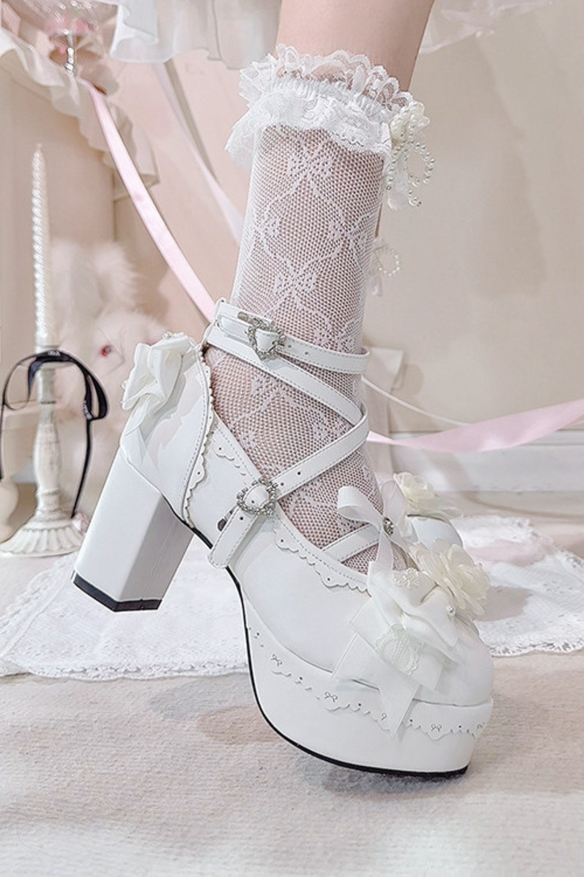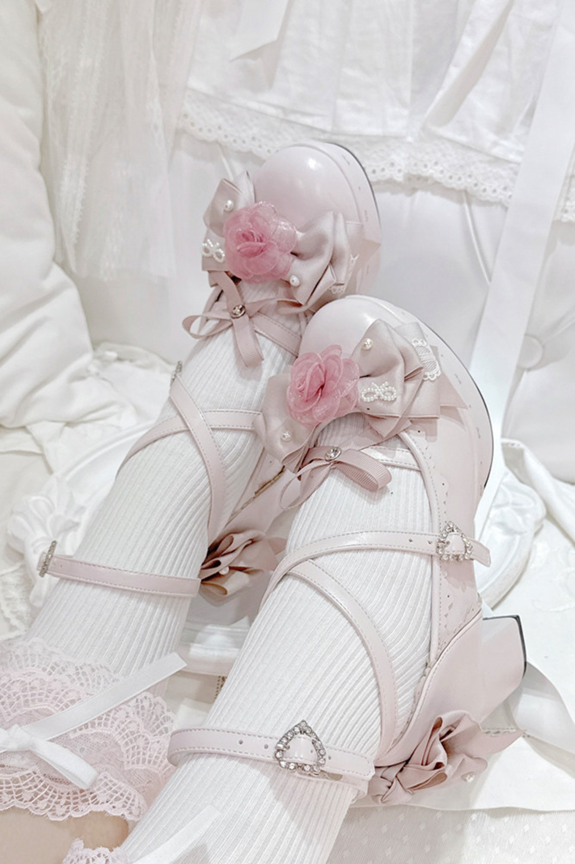 ❤ Blumen-Schleifen-Dance-Lolita-Absätze ❤
