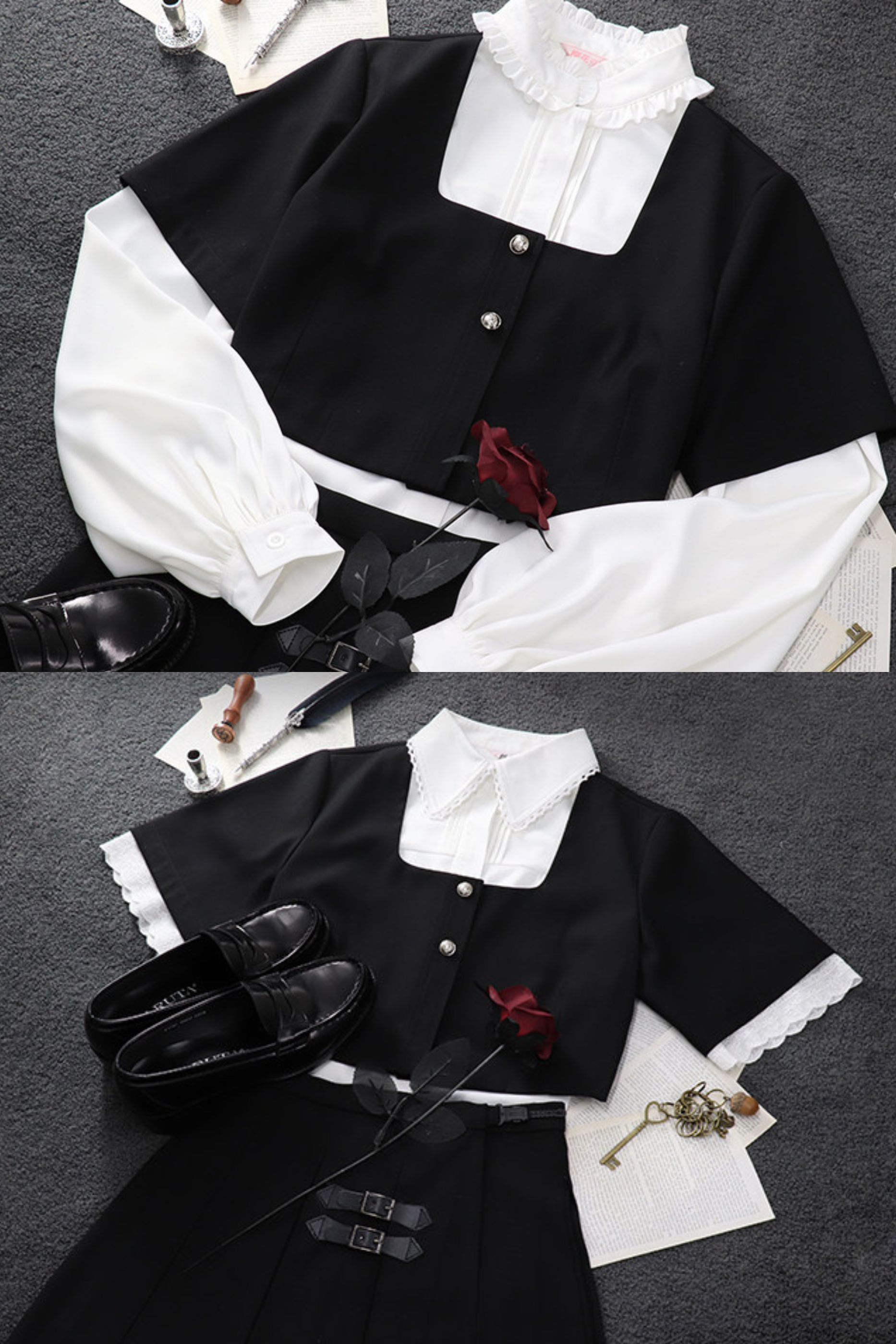 ❤ Maria Rüschenhemd + Plisseerock + Kurze Jacke ❤