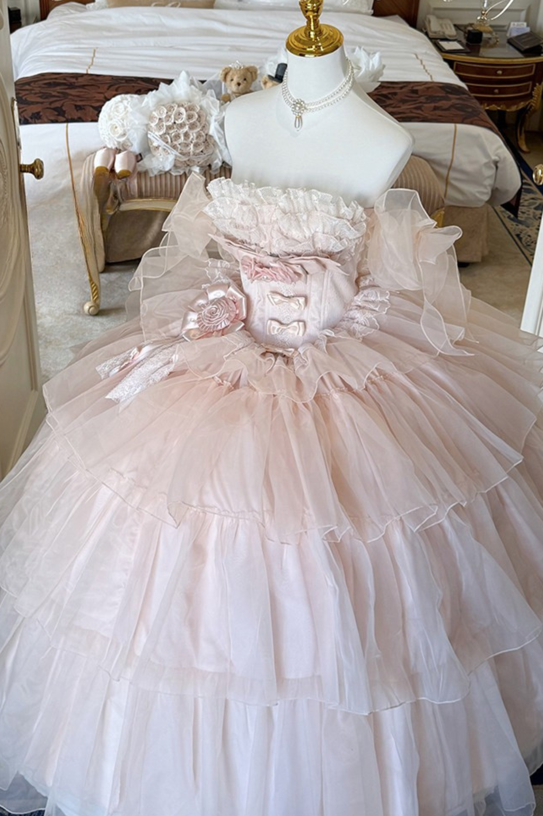 [Vorbestellung bis 30. März]Reines, süßes Hochzeitskleid + Ärmel + Schal