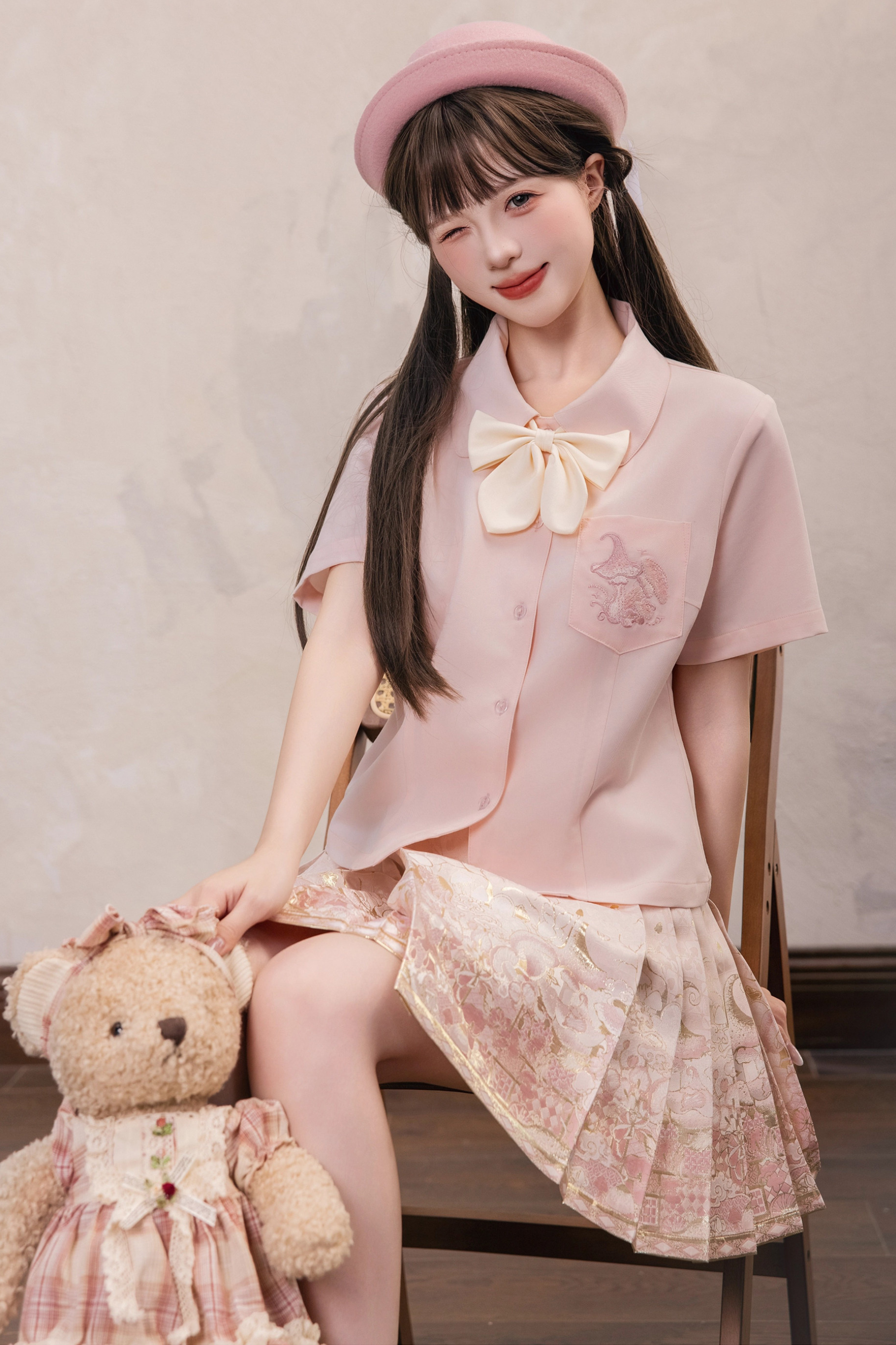 ❤ Süßes chinesisches Preppy-Stil Shirt + Rock + Schleifen-Krawatte ❤