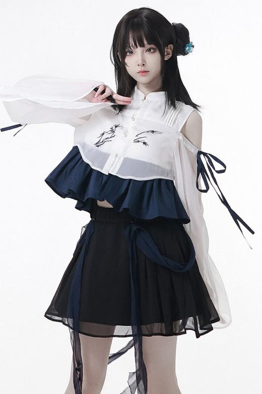 Subcultural Modern China Top + Pants + Off-Shoulder Shirt + Skirt