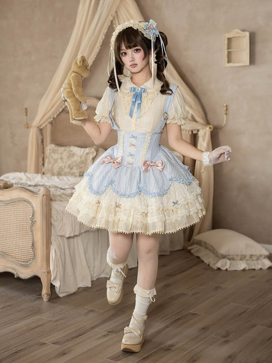 【5月8日予約締切】クラシックレースリボンブラウス+サスビスチェティアードドレスフルセット+コンプリートセット