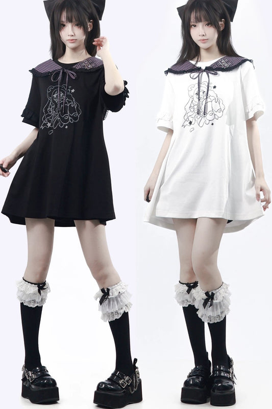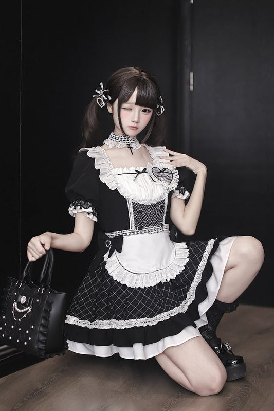 [Order Deadline: May 15] Black x White Lace Ruffle Maid Dress Full Set + Cross Choker