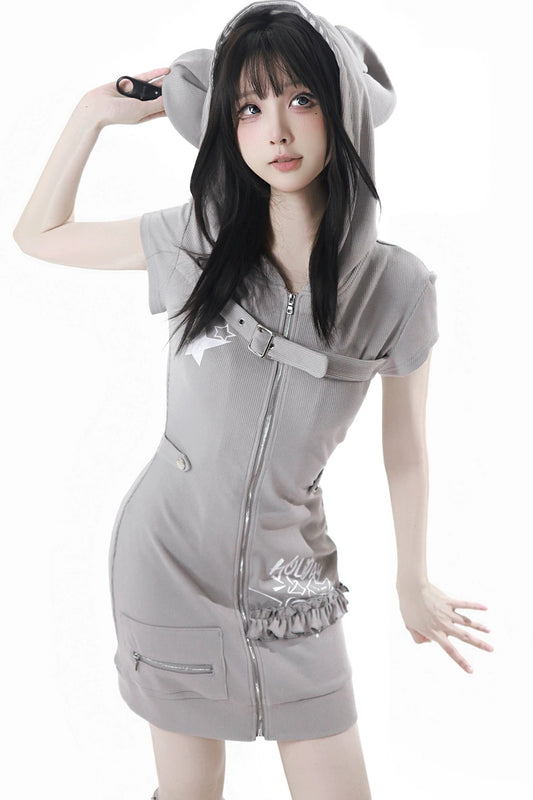 レース袖付きうさ耳地雷ワンピース+ショートパンツ