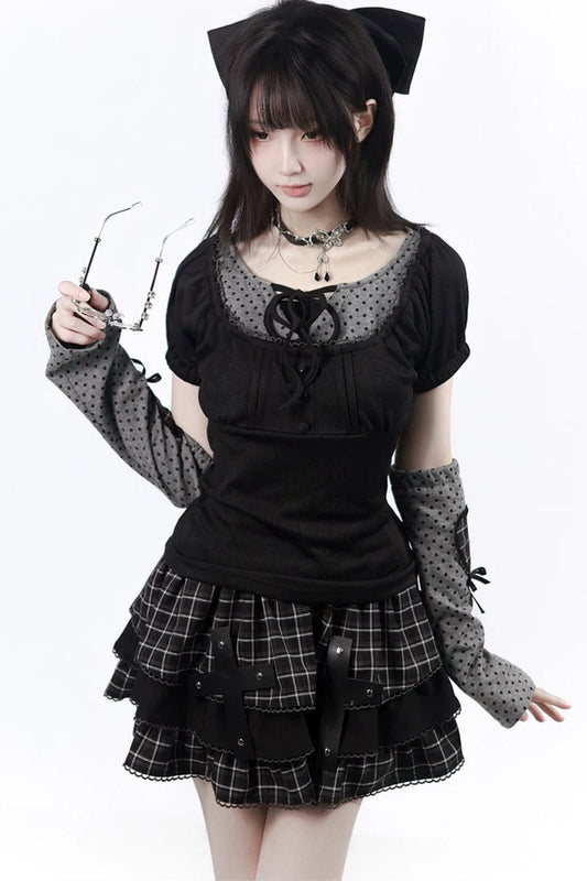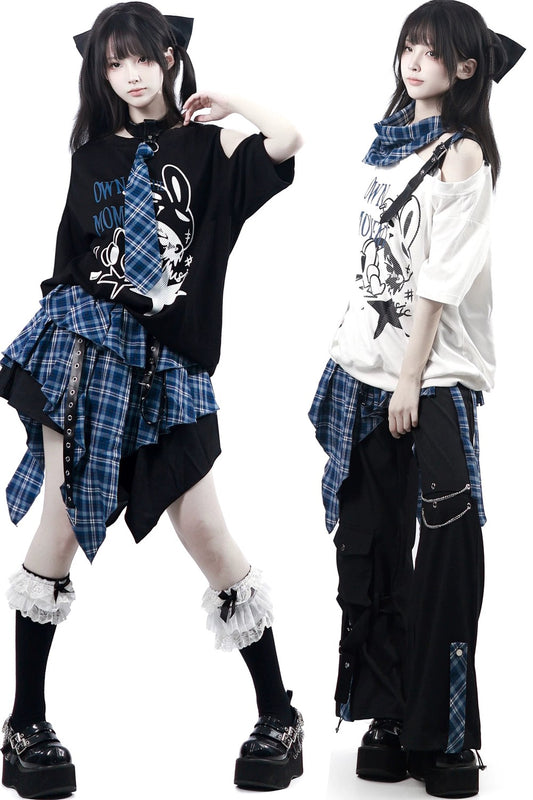 Subculture Punk Dark Kawaii Top + Skirt + Pants