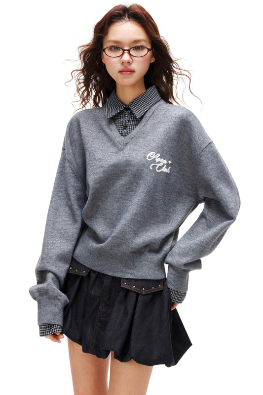 【1月6日予約締切】ホワイトレースオフショルダーリボンニットトップス+千鳥格子スカート