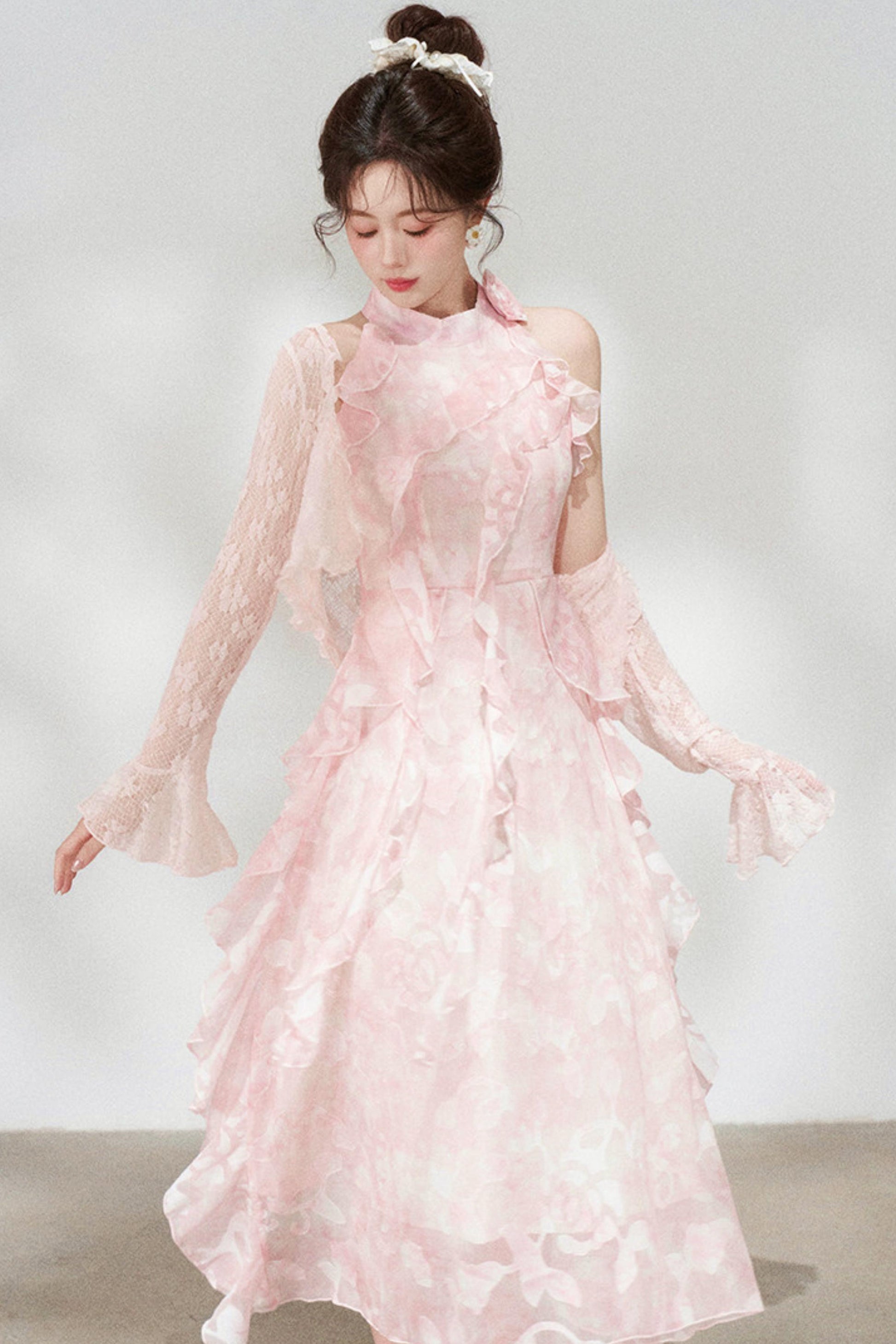 ❤Ruffled Green Chiffon Dress + Outerwear❤